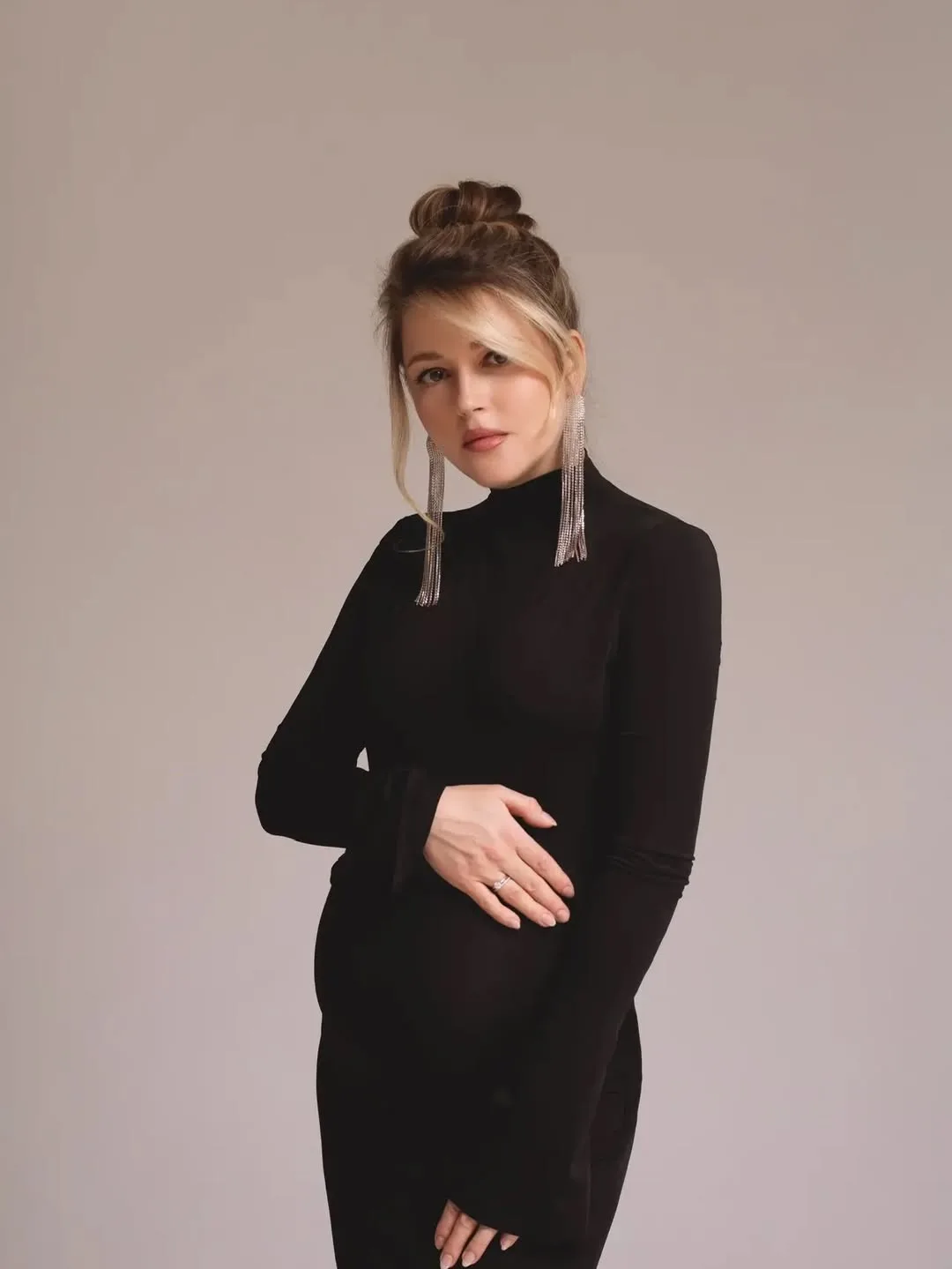 Радостной новостью 37-летняя актриса поделилась у себя на странице в запрещенной соцсети, выложив фото, где виден ее округлившийся живот.