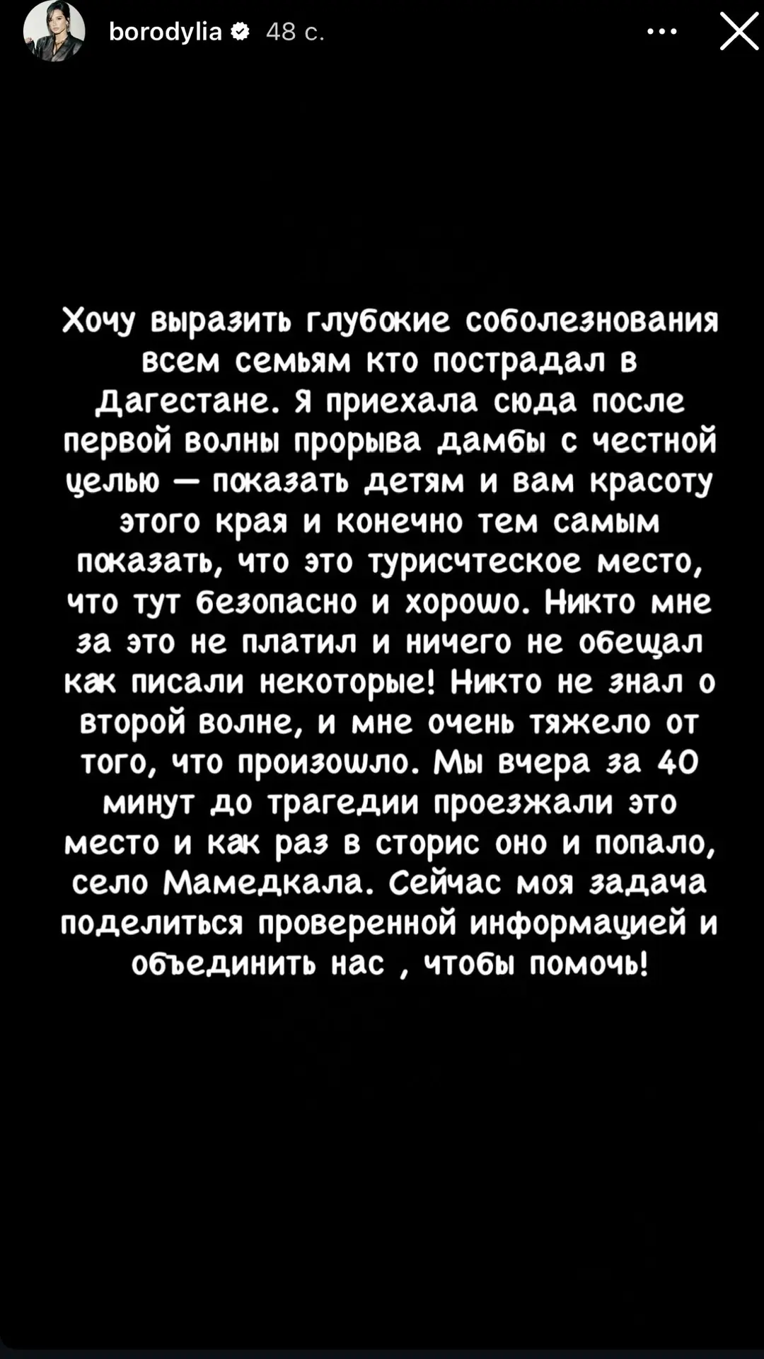 Многие звезды выразили поддержку Дагестану. Актер Сергей Романович прибыл в республику с гуманитарной помощью. Виктория Боня записала видео с призывом объединиться. Ксения Бородина, которая в эти дни улетела в республику в отпуск, выразила слова поддержки. Федук, Юлия Тополинская и другие также не остались в стороне.
