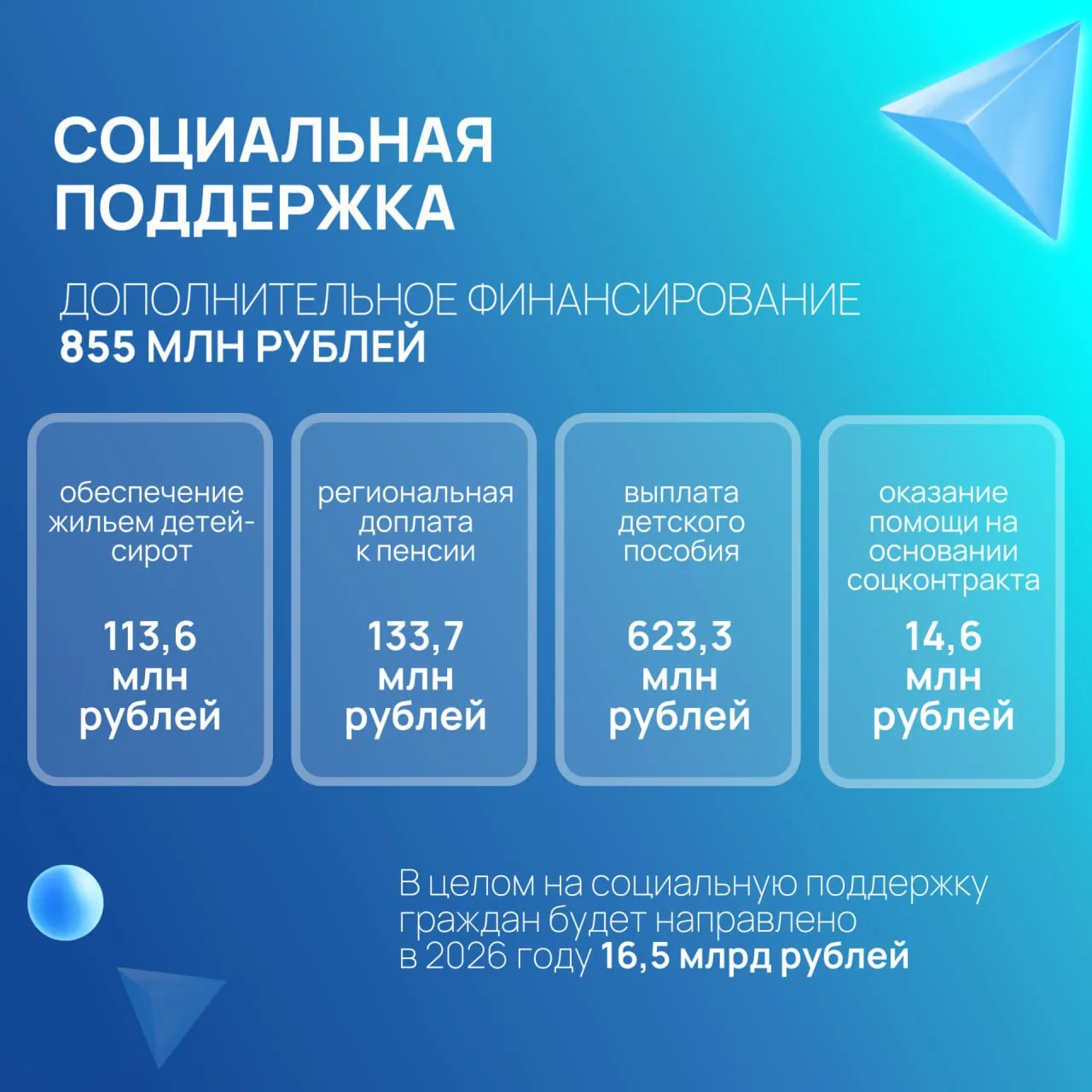 🔹Более 1 млрд рублей - на соцзащиту, здравоохранение и образование