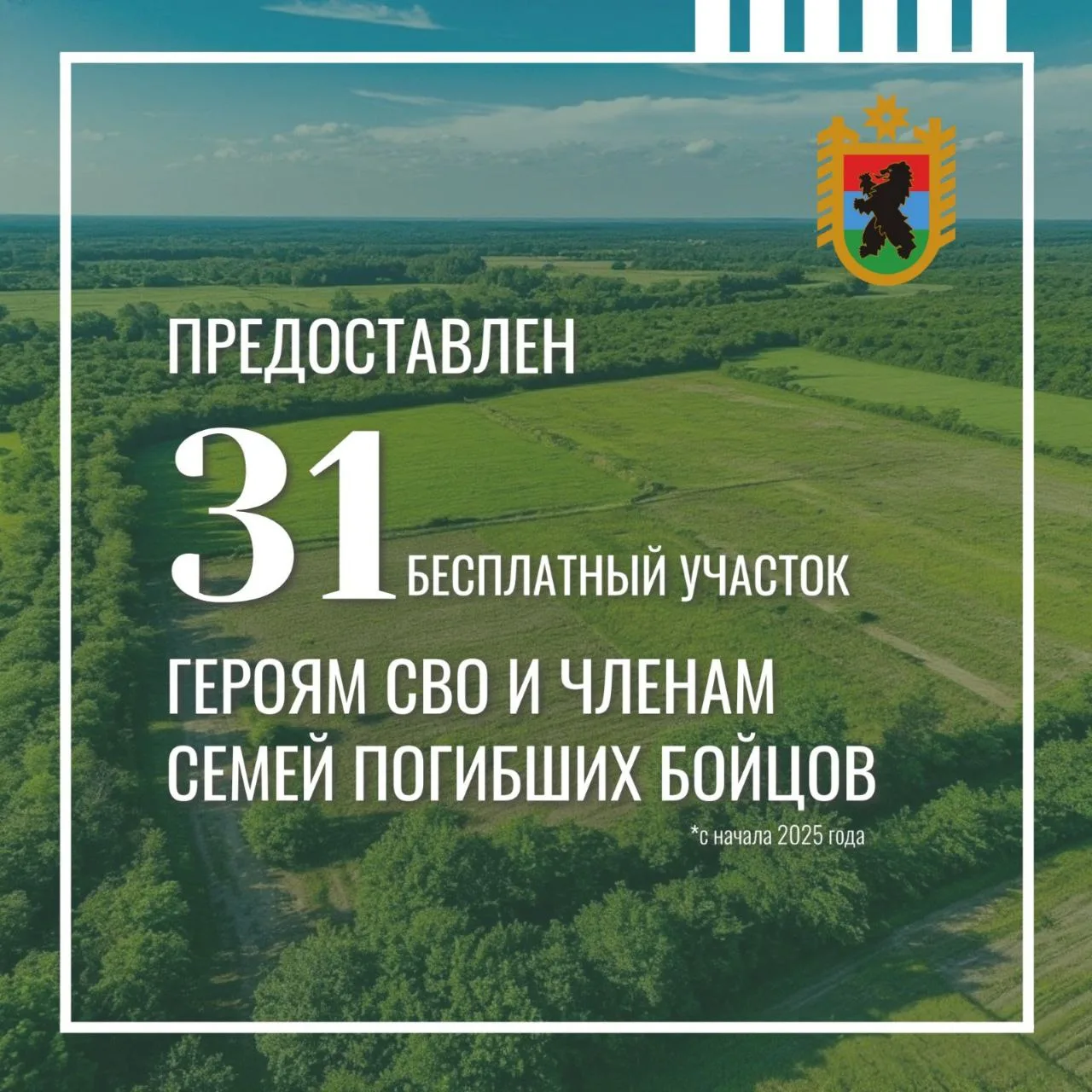 ✅ С начала года героям СВО и членам семей погибших бойцов мы предоставили 31 бесплатный земельный участок