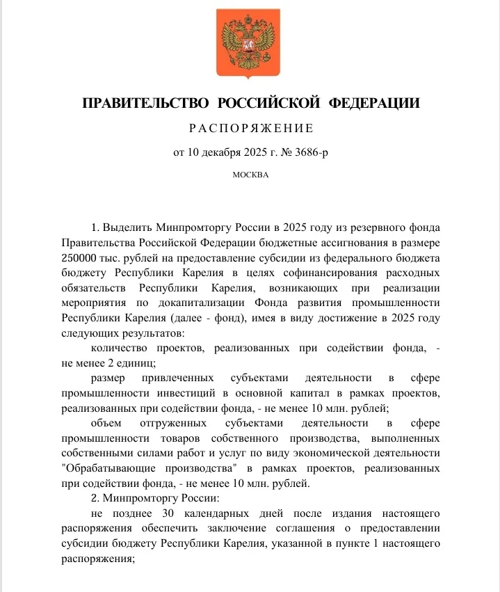 ❗️Михаил Мишустин утвердил изменения в федеральную целевую программу развития Карелии