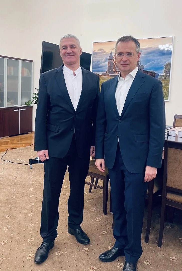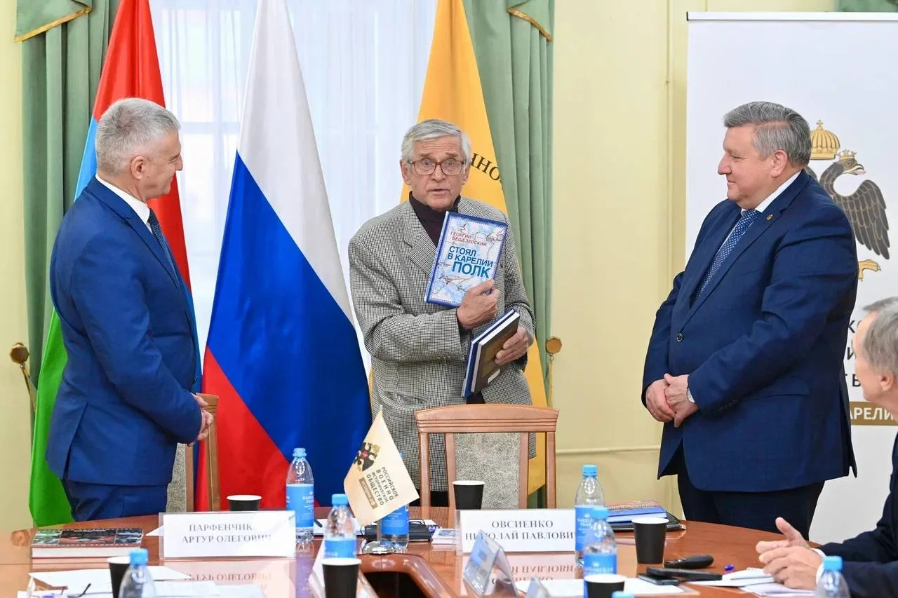 🔹 Работаю в Москве. Встретился с помощником Президента России, председателем Российского военно-исторического общества Владимиром Мединским. Поблагодарил от имени жителей Карелии за поддержку установки памятника Валериану Фролову. Наша следующая задача – продолжить благоустройство примыкающей территории. В целом эта композиция на Кукковке должна стать частью архитектурно-городского ансамбля, включая строящийся Храм Казанской иконы Божией Матери.