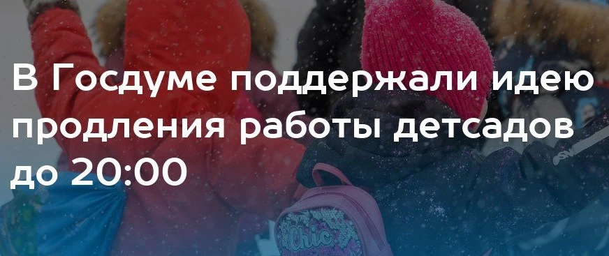 19 января член Общественной палаты Наталья Москвитина заявила РИА Новости, что работу детских садов в России стоит продлить до 20:00 часов. По ее словам, существующий график работы детских садов устарел и не удовлетворяет потребностям работающих родителей, поскольку даже если они освобождаются около 19:00 часов, им нужно время на дорогу до сада. Она считает, что для работы в дополнительные часы достаточно будет помощника воспитателя, который обеспечит присмотр за детьми.