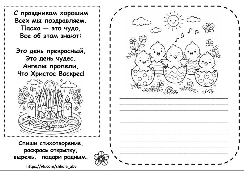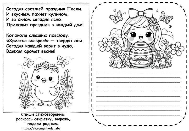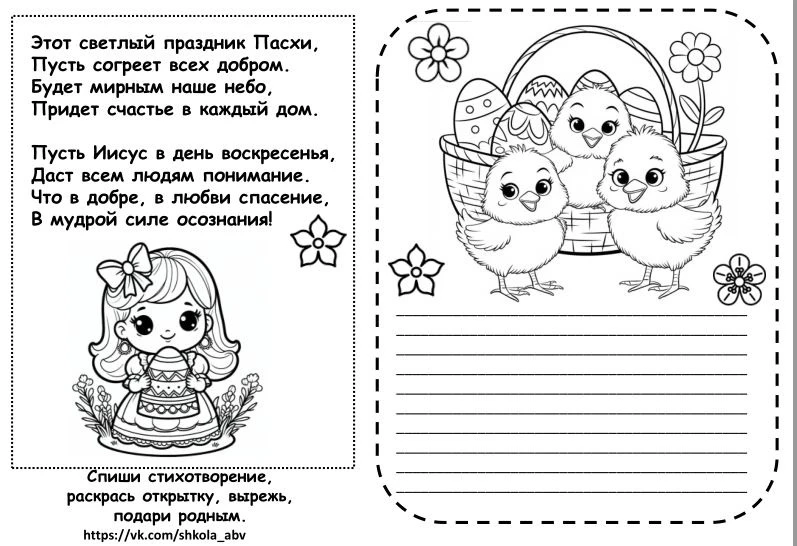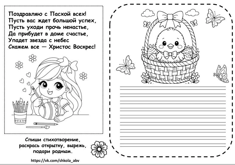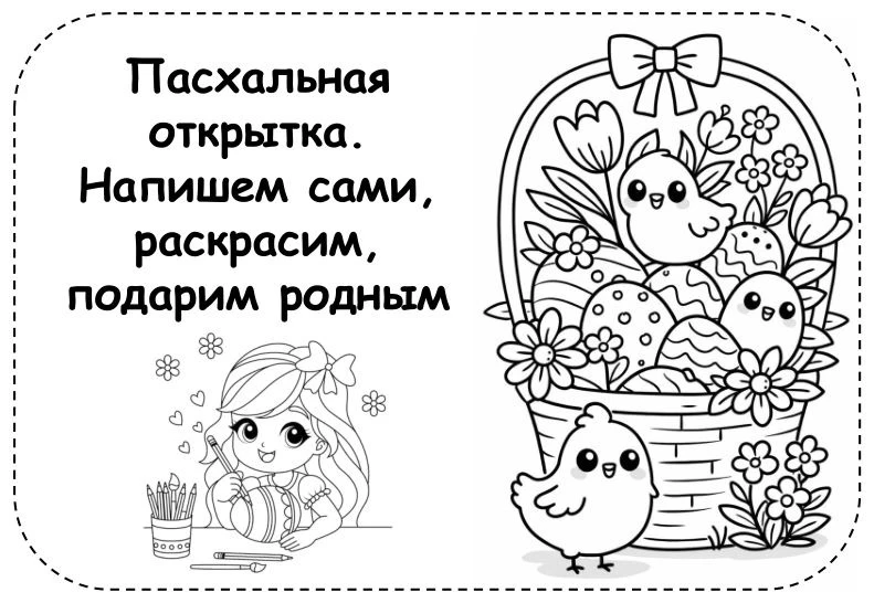 Пасхальная открытка. Напишем сами, раскрасим, подарим родным.