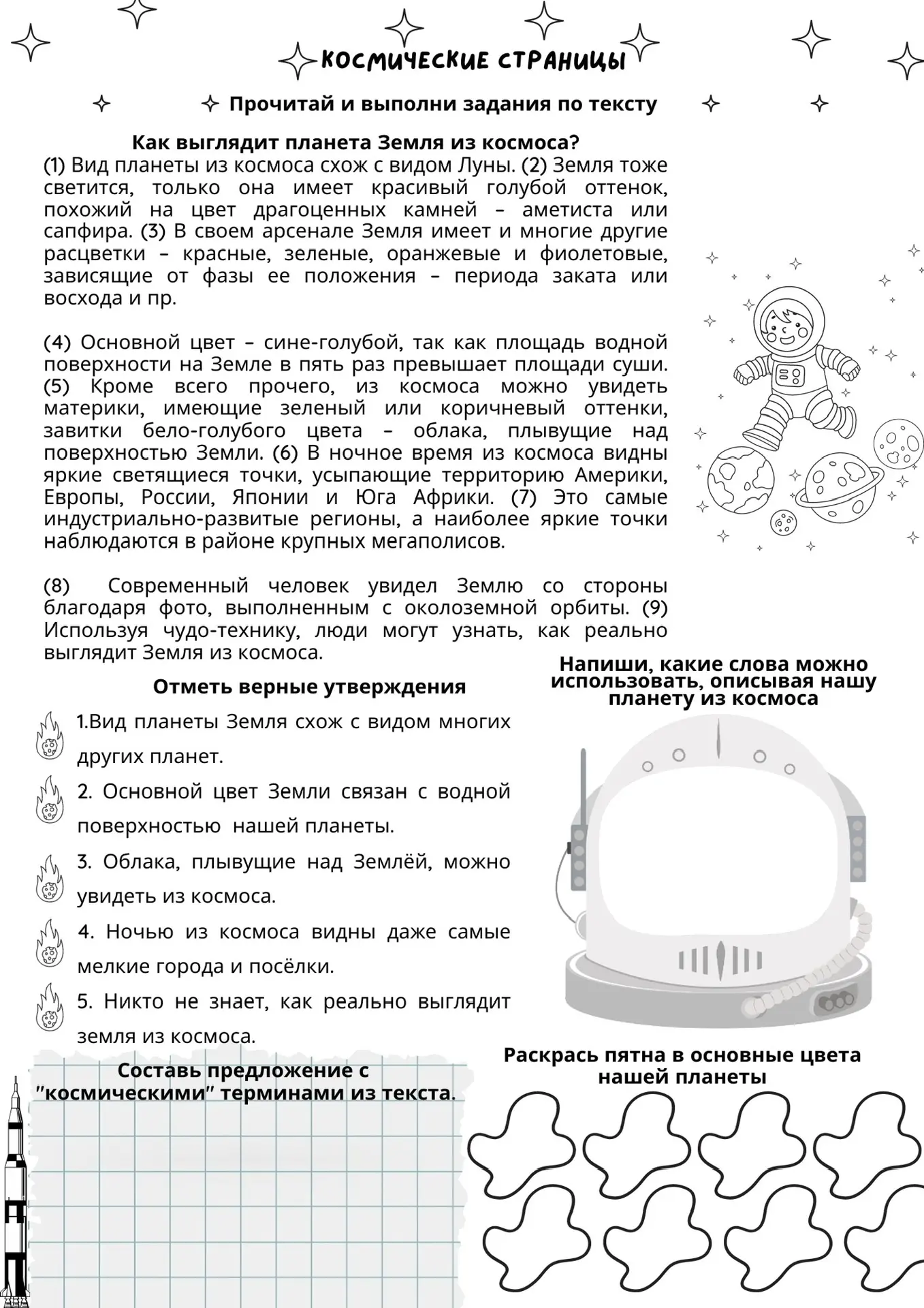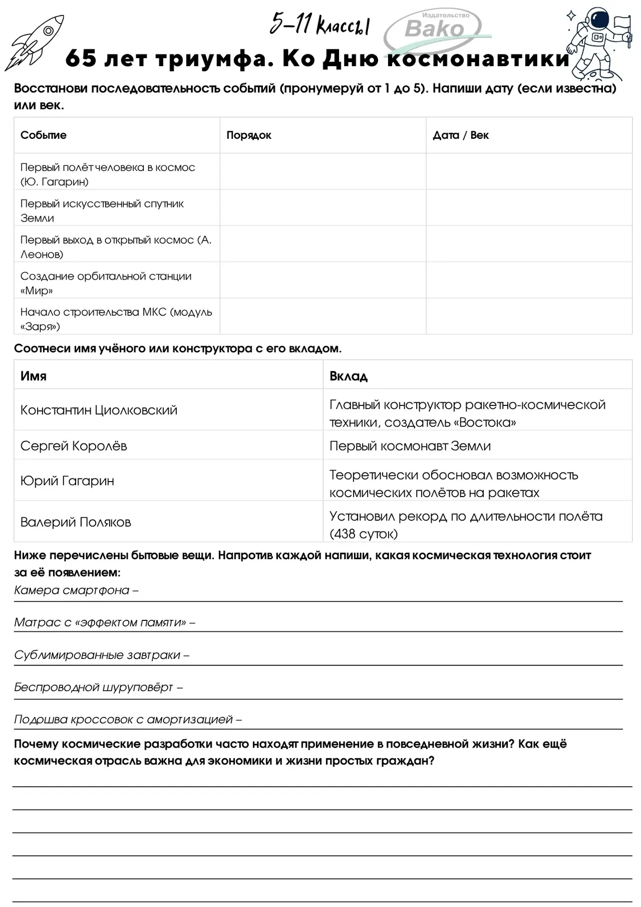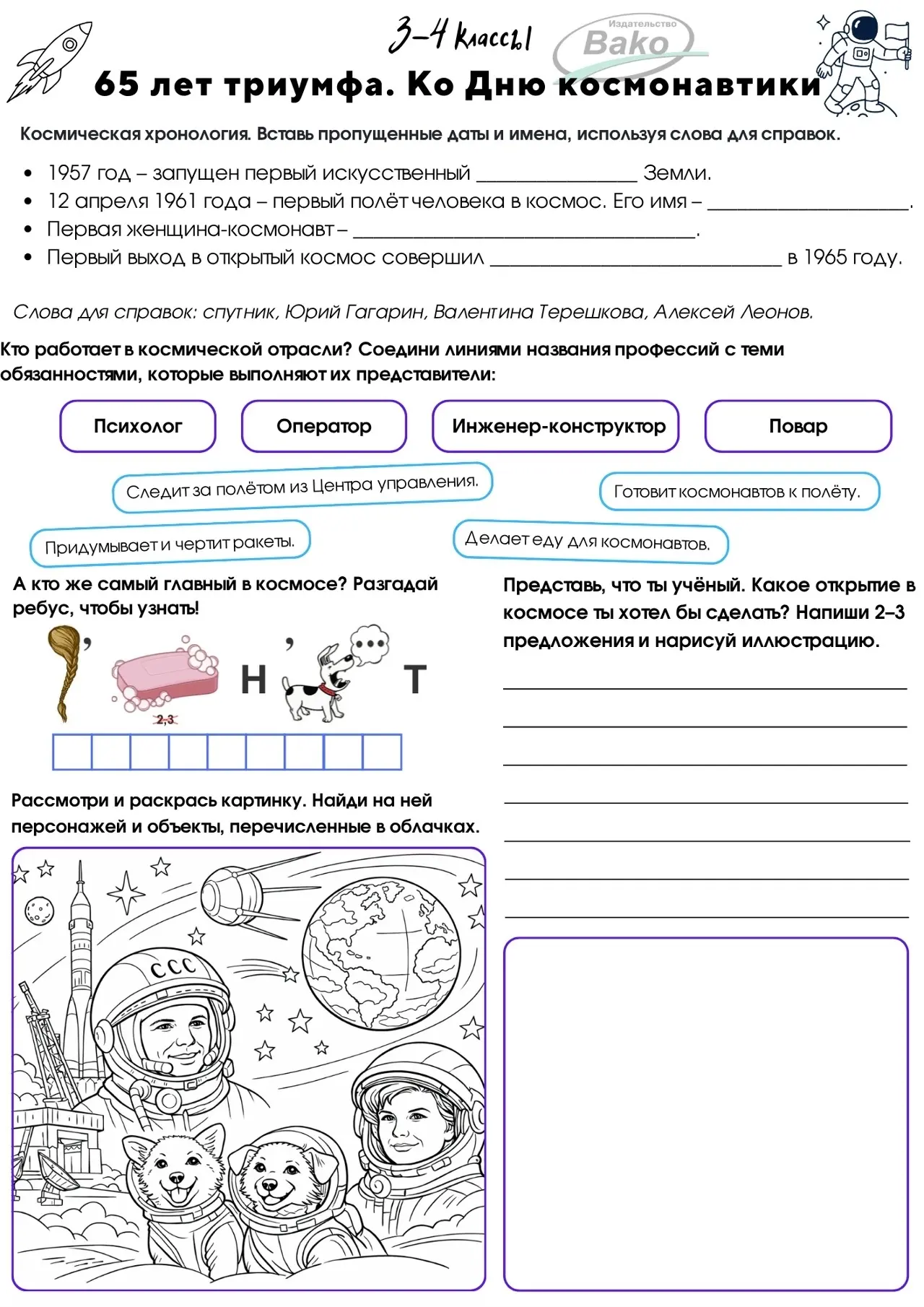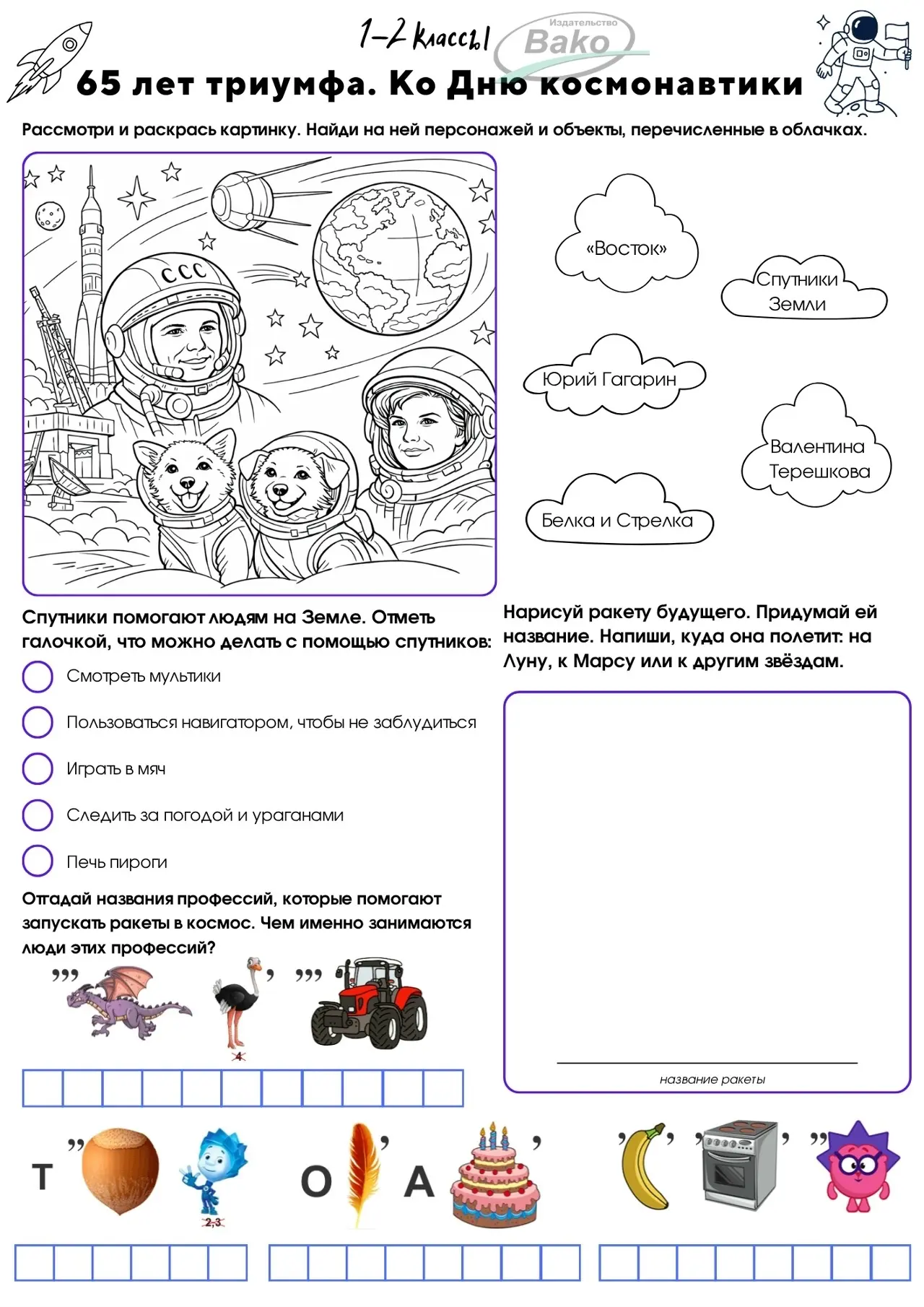 Рабочие листы для 1-11 классов к РОВ «65 лет триумфа. Ко Дню космонавтики»