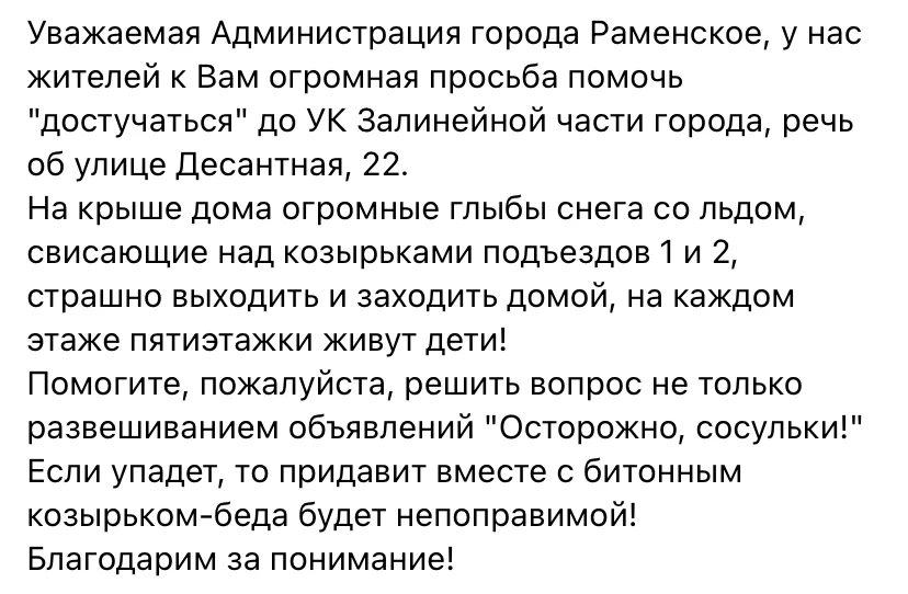 Просим принять меры и помочь решить эту проблему.
