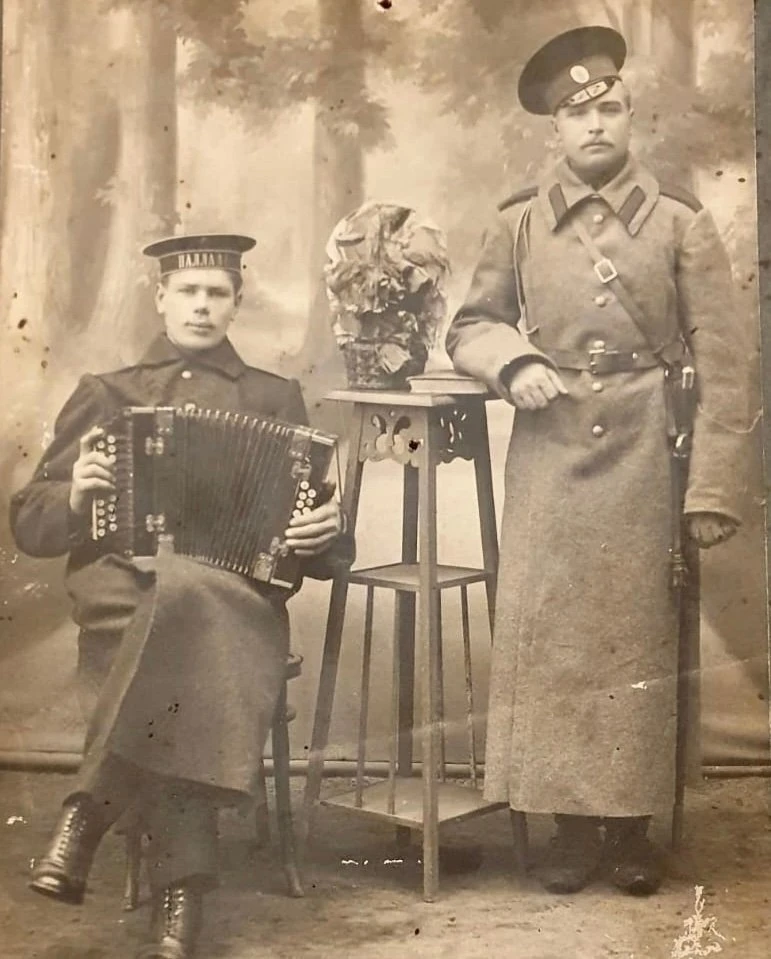 Слева его товарищ-раменчанин, матрос с броненосного крейсера «Паллада».