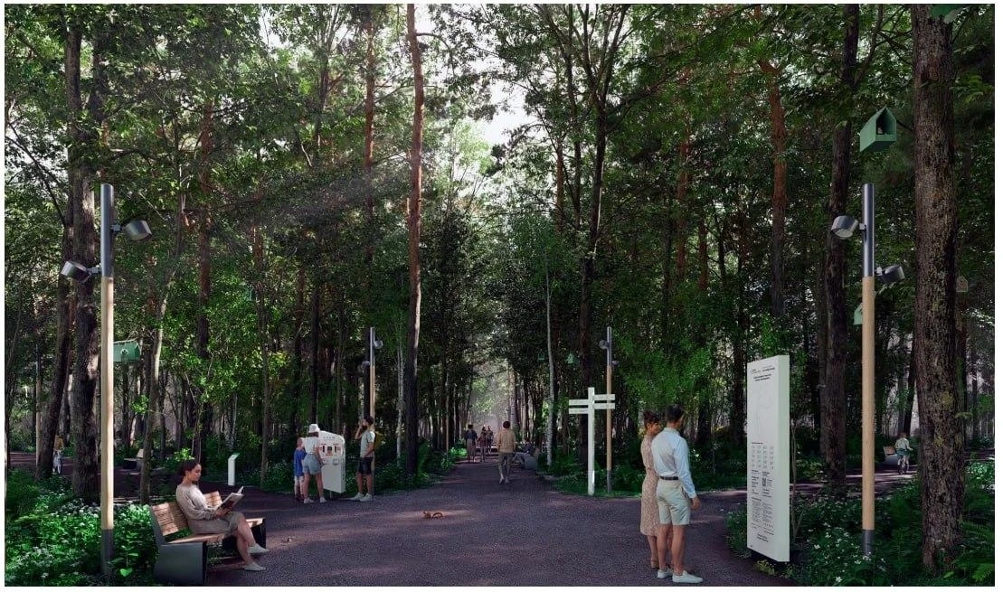 В «Восьмидорожье» появятся семейные зоны, детские площадки, места для прогулок и пикников, а также площадка для выгула собак. Вмешательство в природу будет минимальным — уберут только аварийные деревья, добавила Юсупова.