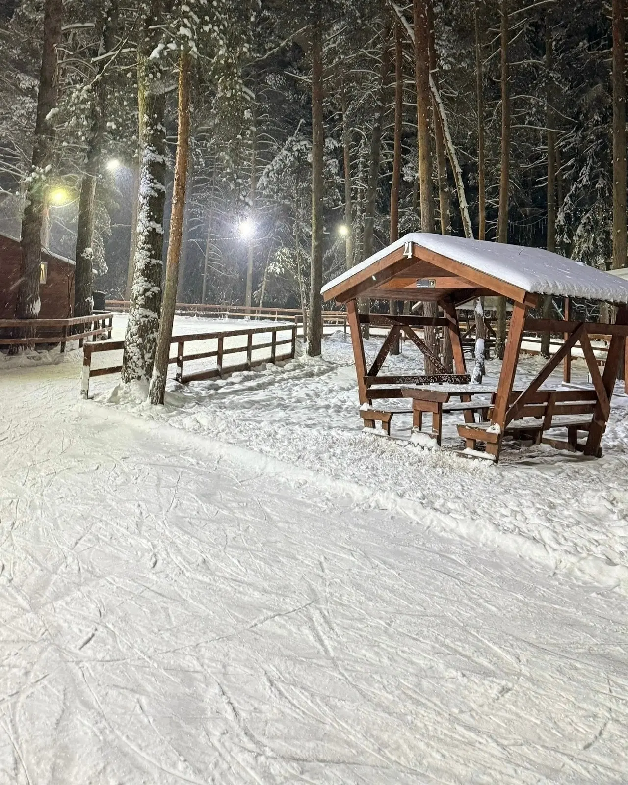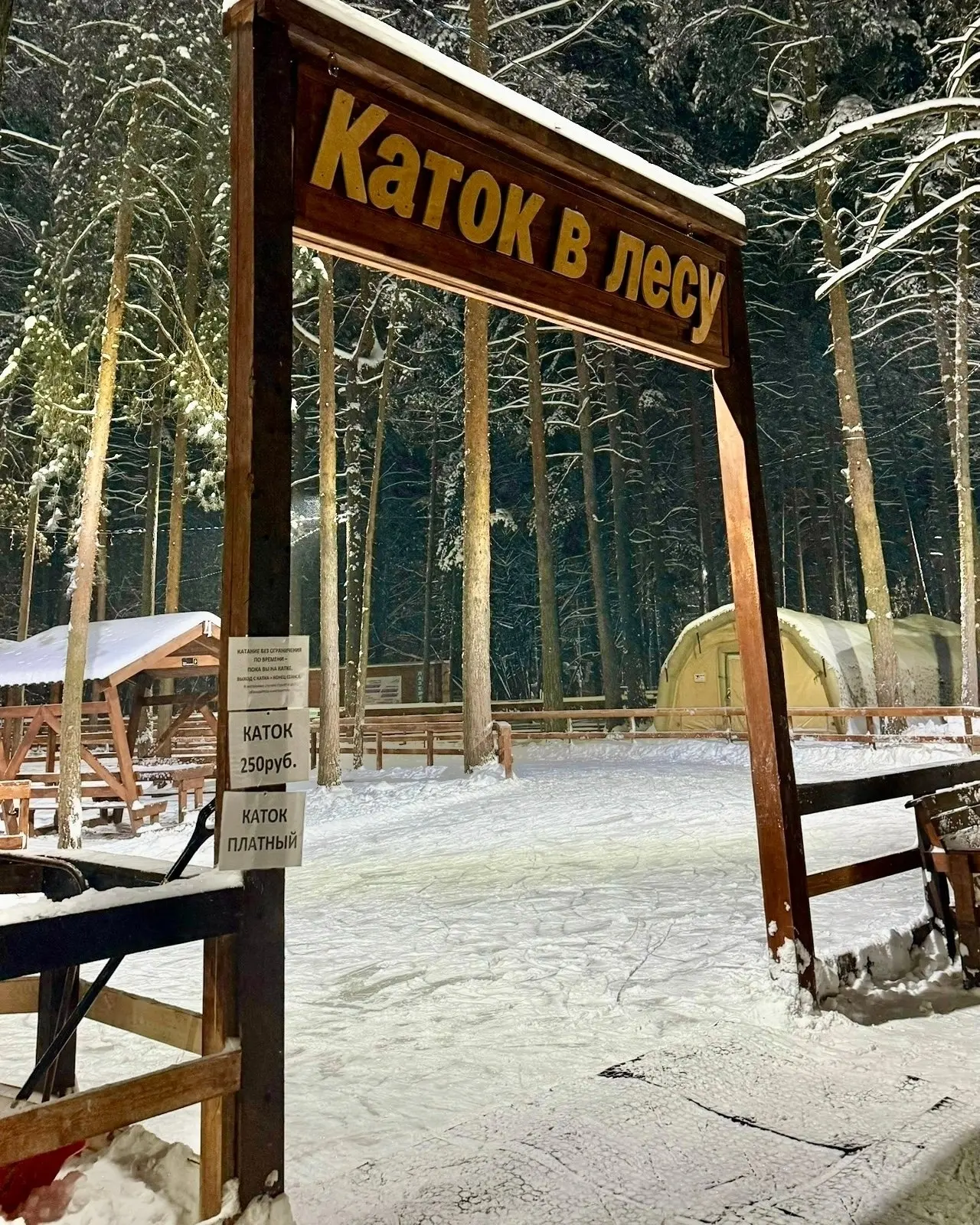 Вечером «Каток в лесу» становится особенно атмосферным
