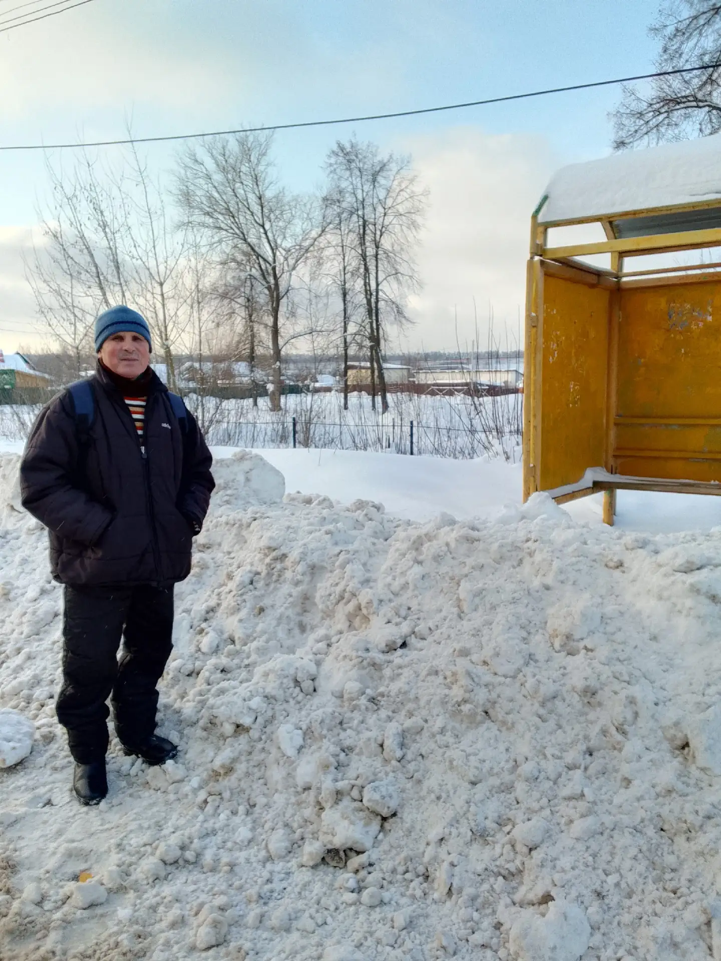 Фенино напротив ДК остановка. Люди стоят на проезжей части