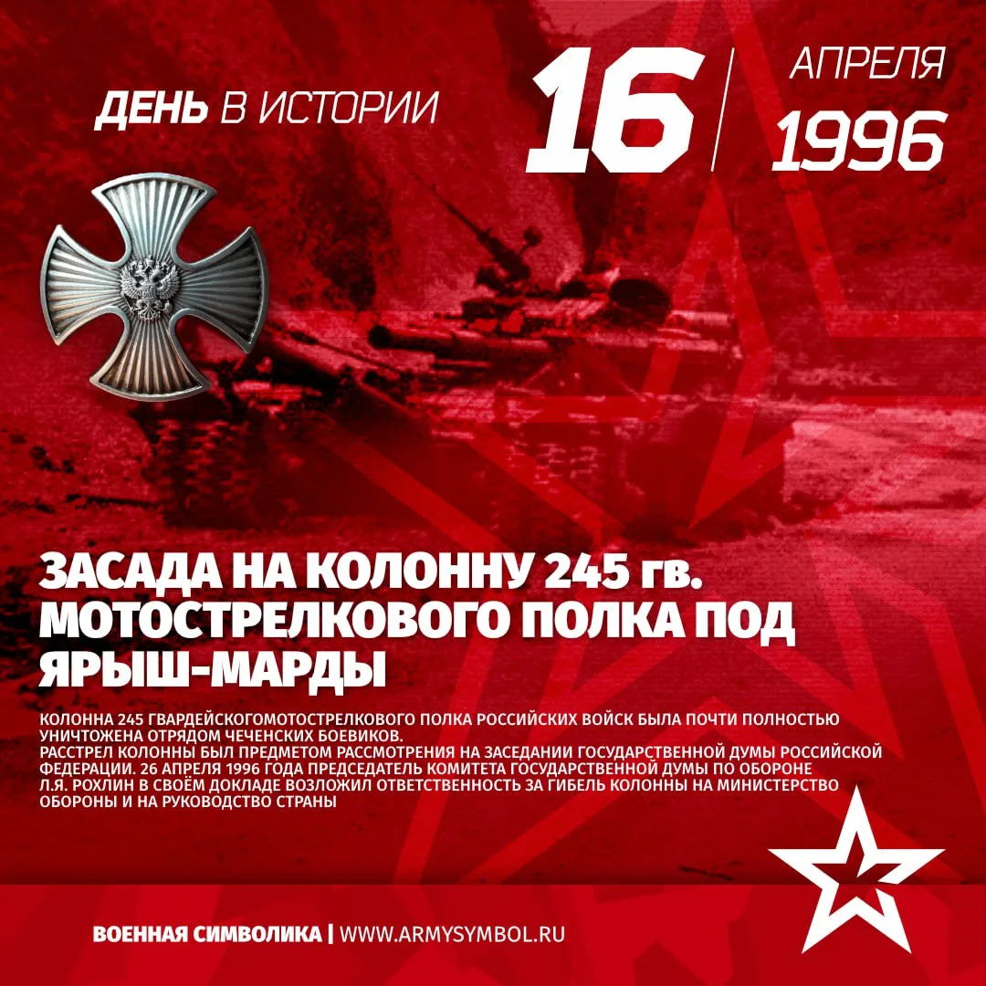 16 апреля 1996 колонна 245-го мотострелкового полка российских войск была почти полностью уничтожена отрядом чеченских боевиков.