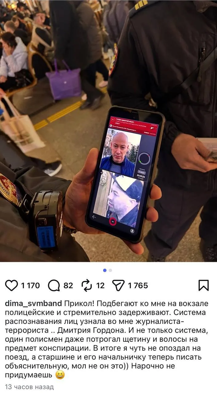 В Петербурге камеры видеонаблюдения с распознаванием лиц навели шороху. Они вычислили украинского журналиста Дмитрия Гордона*.