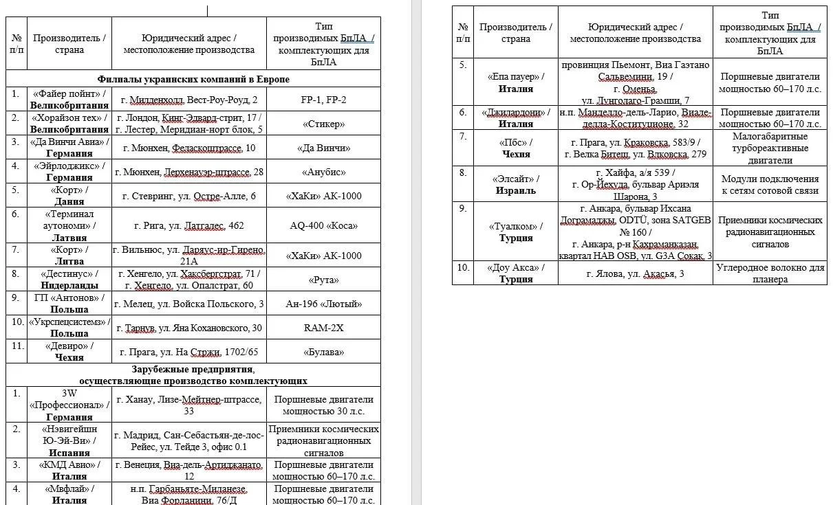 Минобороны РФ обнародовало названия и адреса филиалов украинских предприятий в Европе, где производят БПЛА для ударов по России.