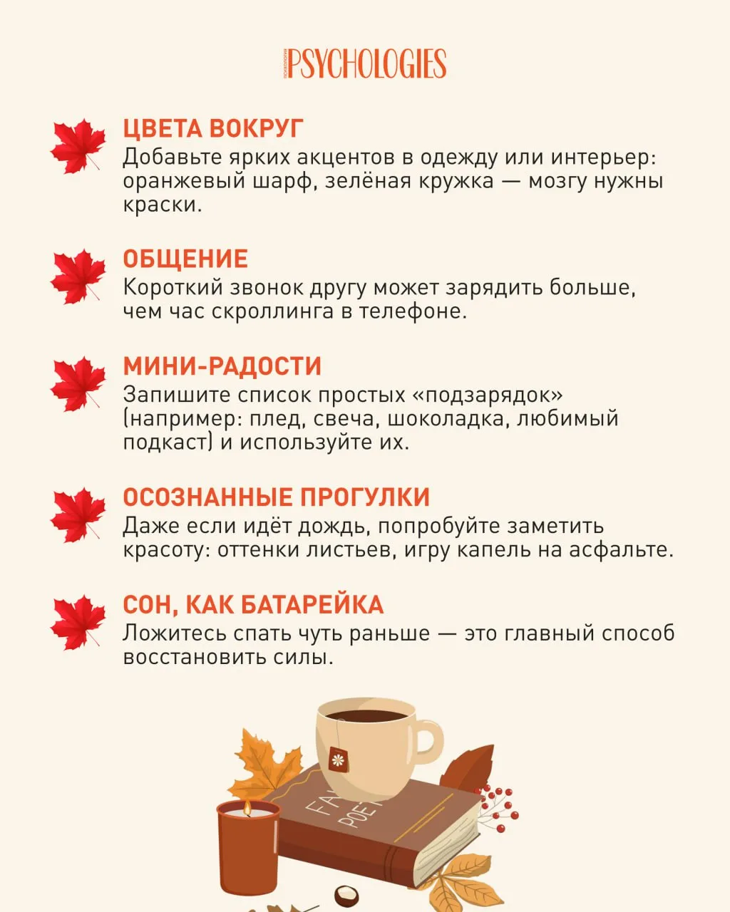 Осень часто проверяет нас на прочность: короткий день, дождь, туман… Но погода за окном не должна влиять на наше эмоциональное состояние.
