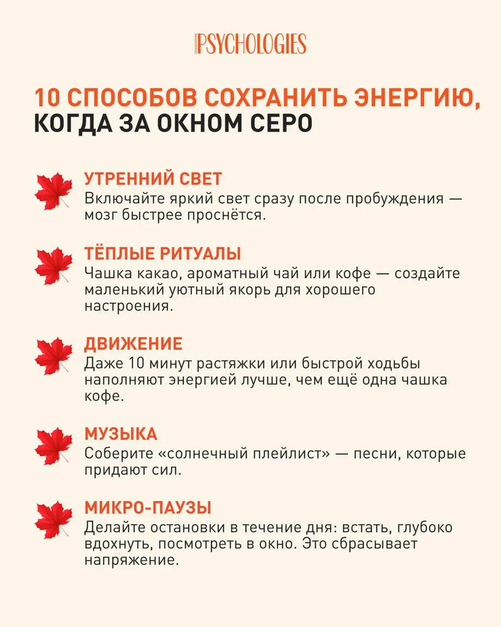 ✨ Главное — помнить: серый день может быть фоном, но не обязан окрашивать ваше настроение. Энергию можно создавать изнутри.