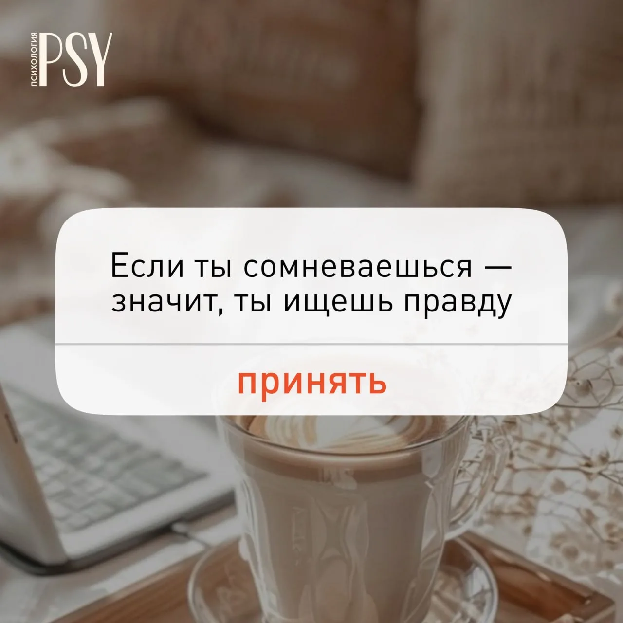 Многие думают: «Сомнения мешают двигаться». Но на самом деле сомнения — это маяки, которые показывают: ты не идёшь по инерции, ты проверяешь свой путь. Без сомнений было бы проще, но и жизнь стала бы поверхностной.