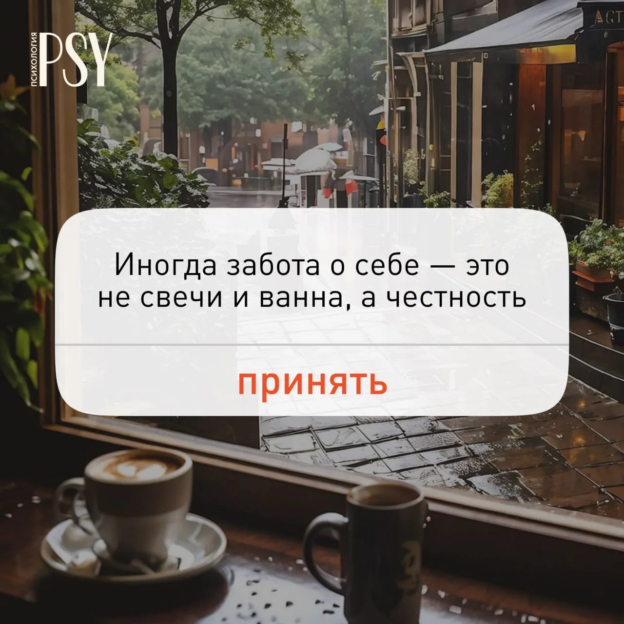 Мы часто путаем заботу о себе с приятностями. Настоящая забота — это поговорить с врачом, когда страшно. Это признать, что работа больше не радует. Это отпустить отношения, в которых больно.