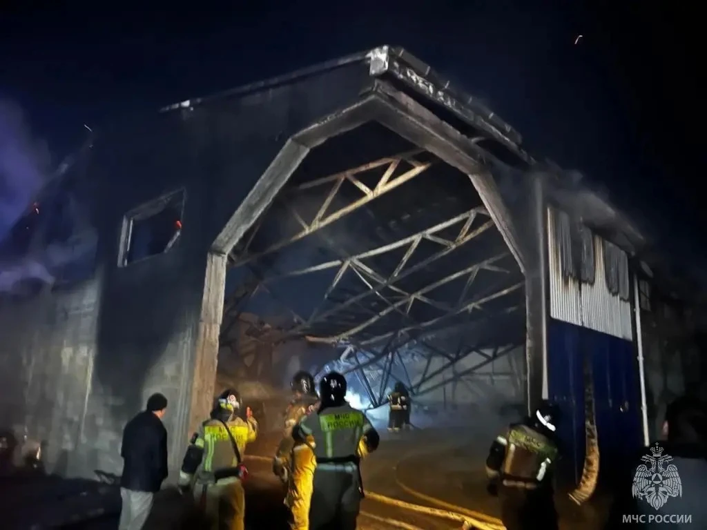 В поселке Агачаул пожар уничтожил ангар для ремонта фур и спалил крышу частного дома.