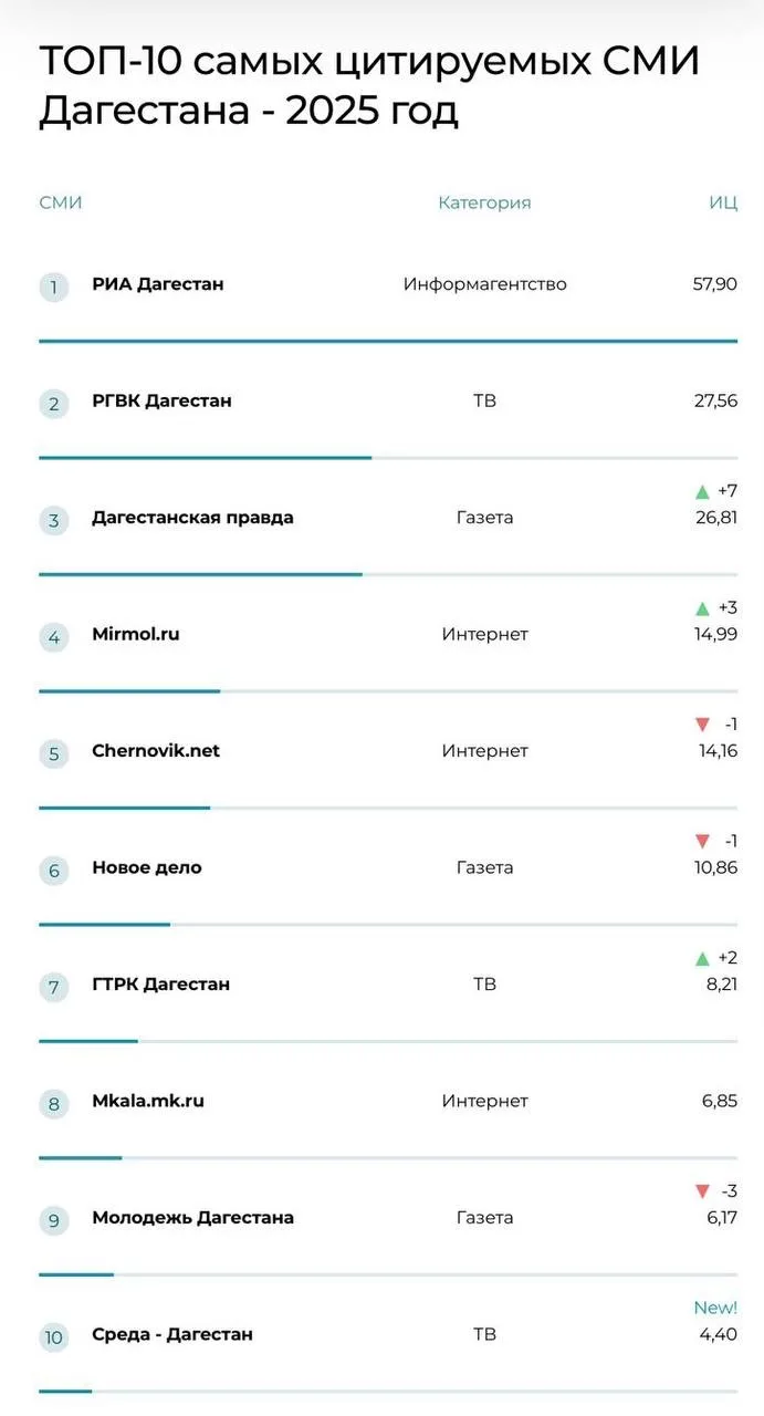 😎 РГВК Дагестан - в топ‑5 самых цитируемых СМИ республики