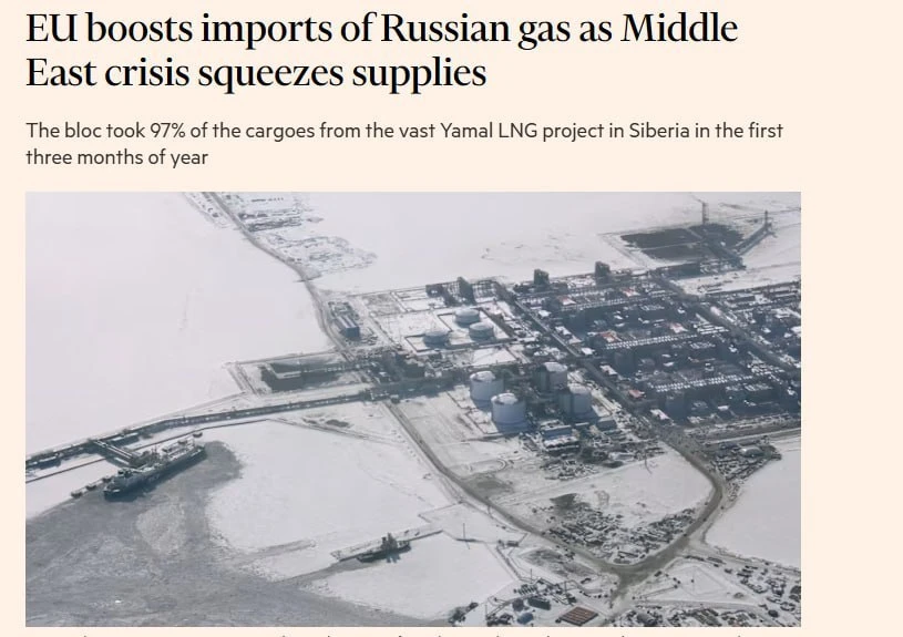 ЕС нарастил закупки российского газа на 17% из-за последствий конфликта на Ближнем Востоке.