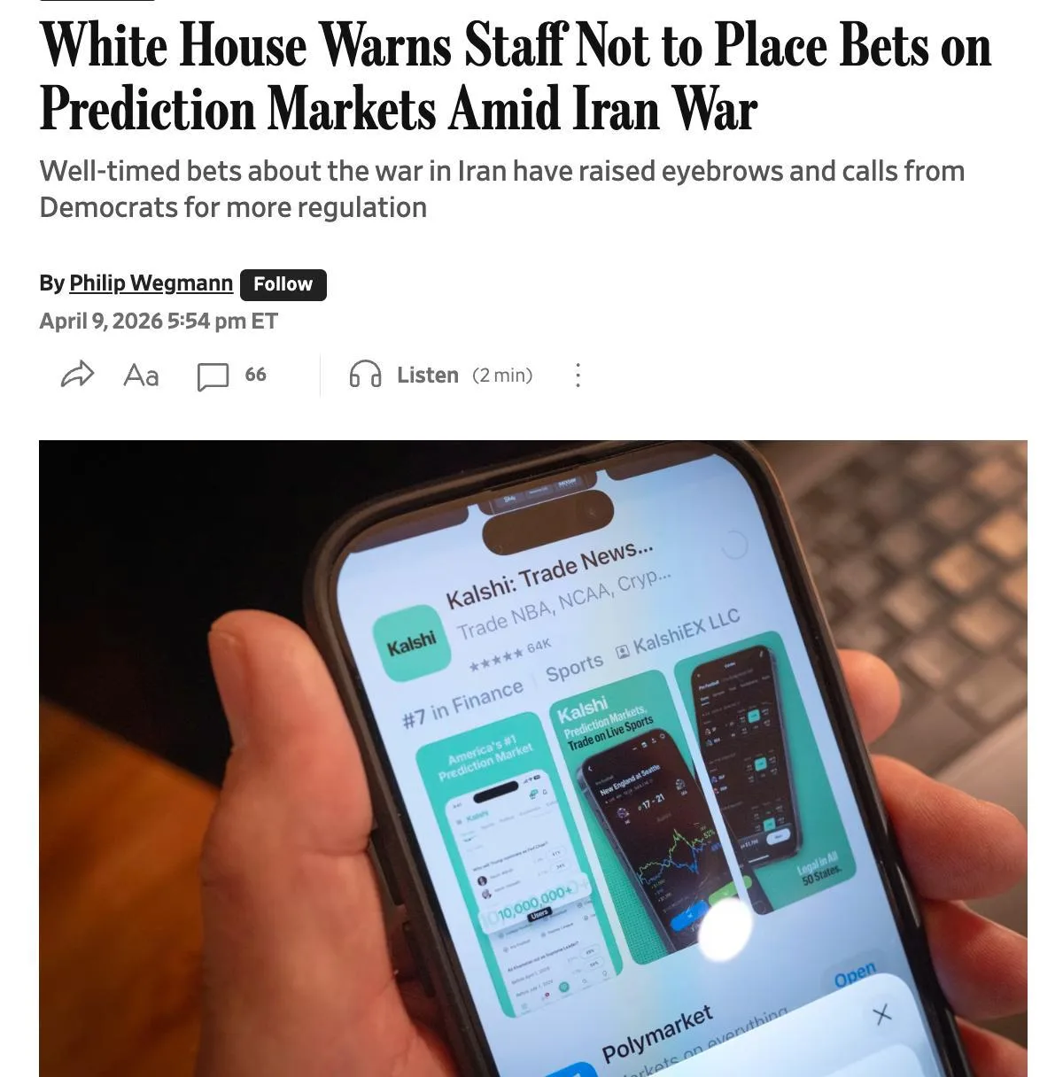 Белый дом предостерёг сотрудников от ставок на фоне войны с Тегераном, пишет WSJ.