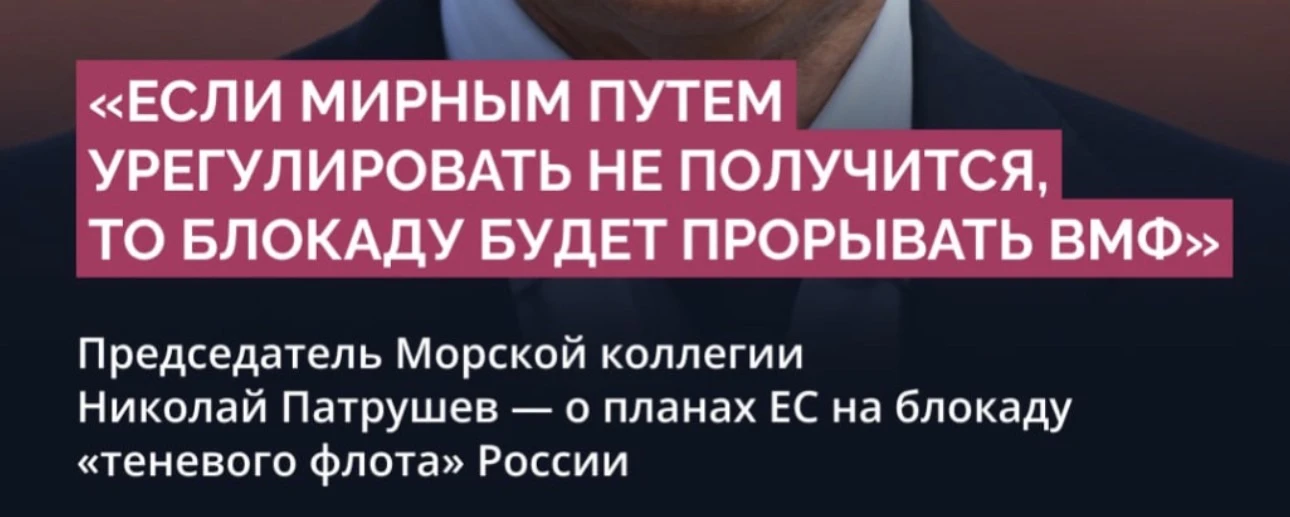 Он подчеркнул, что любые попытки морской блокады России нелегальны с точки зрения международного права, а понятие «теневой флот» является юридической фикцией. По словам помощника Владимира Путина, Россия может прорвать возможную блокаду с помощью Военно-морского флота, если мирные способы не помогут.