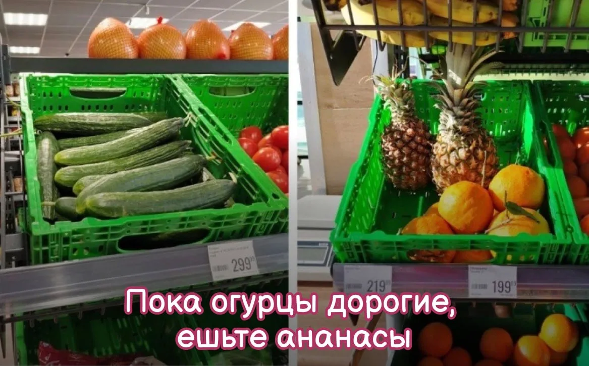 Проведенная журналистами проверка не выявила настолько высоких расценок. Но, например, в сети магазинов «Ярче» огурцы продаются по 300 рублей за кг, причем на ценнике указано ограничение — не более пяти кг в одни руки. По соседству на полке лежат импортные ананасы, стоимость которых составляет всего 220 рублей за кг.