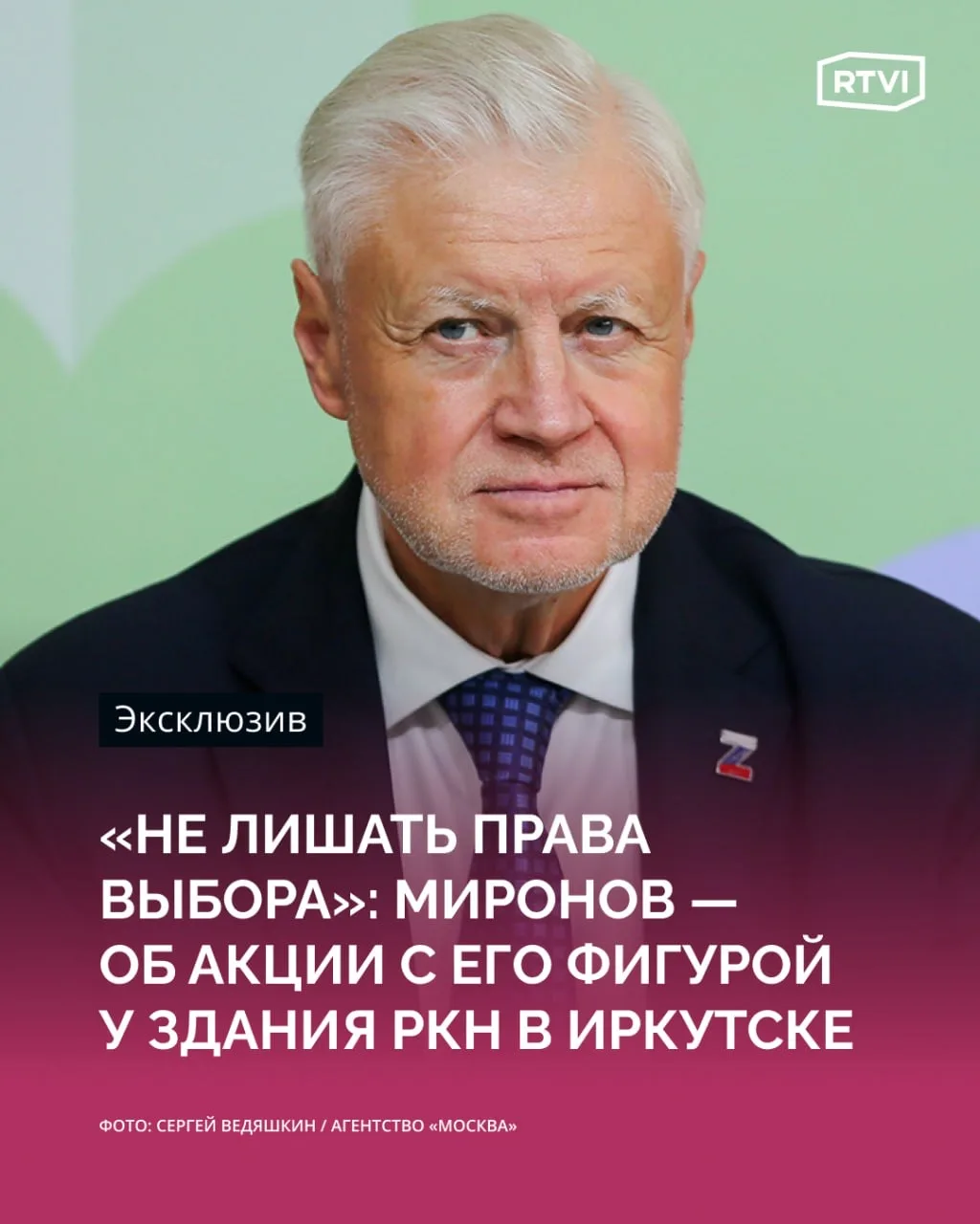 В Иркутске активист Денис Букалов установил у входа в местный филиал Роскомнадзора картонную фигуру лидера «Справедливой России» Сергея Миронова с табличкой «Те, кто замедляет телеграм, — мерзавцы!» в знак протеста против блокировки Telegram. Сам парламентарий в беседе с RTVI отметил, что подобные акции подтверждают, что людей беспокоит сложившаяся ситуация, тут же уточнив, что не призывает к протестам.