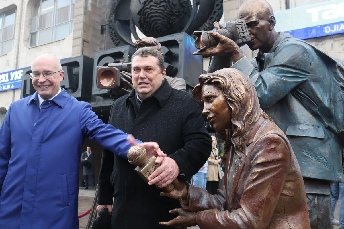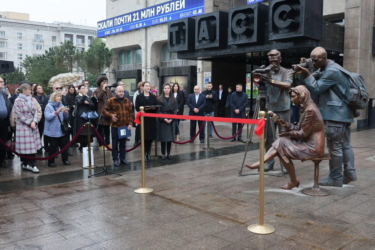 У здания ТАСС в Москве открыли скульптурную композицию "Российские журналисты". Работа скульптора Владимира Иванова посвящена профессии журналиста и всем действующим сотрудникам российских СМИ.
