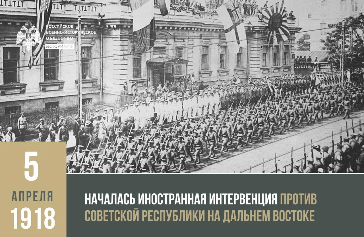 📆 5 апреля 1918 года началась иностранная интервенция против Советской республики на Дальнем Востоке