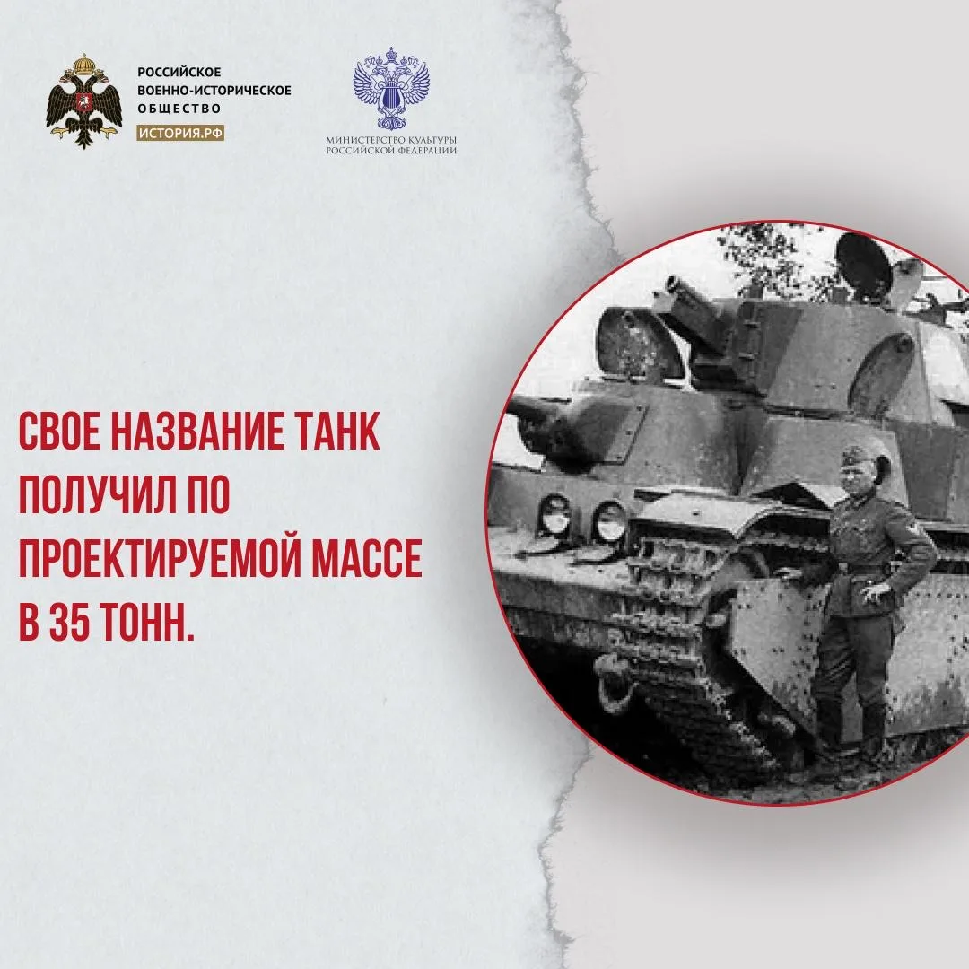 В начале 1932 года конструкторская группа под руководством Николая Барыкова приступила к созданию тяжелого танка. Вскоре был представлен первый образец, получивший название Т-35-1, однако все недочеты были решены лишь с созданием третьего образца — Т-35-А. Его и запустили в серийное производство. Свое название танк получил по проектируемой массе в 35 тонн.