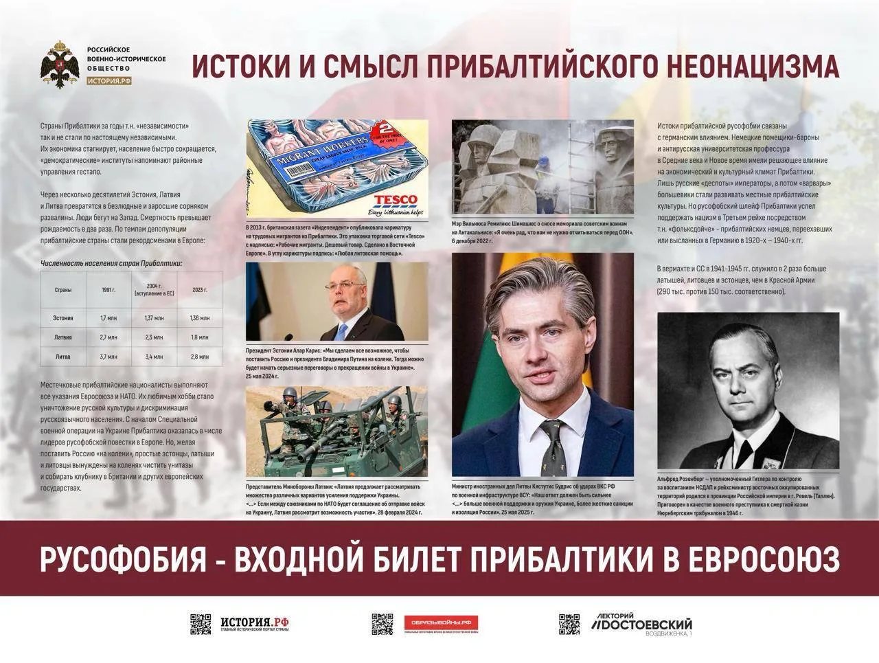 Напомним, что РВИО на регулярной основе занимается просветительской деятельностью о фактах геноцида советского народа на территории бывшего СССР. В июне 2025 года РВИО открыло выставку близ Посольства Латвийской «Истоки и смысл прибалтийского неонацизма». Материалы демонстрируют развитие нацистской идеологии в странах Прибалтики в прошлом и настоящем.
