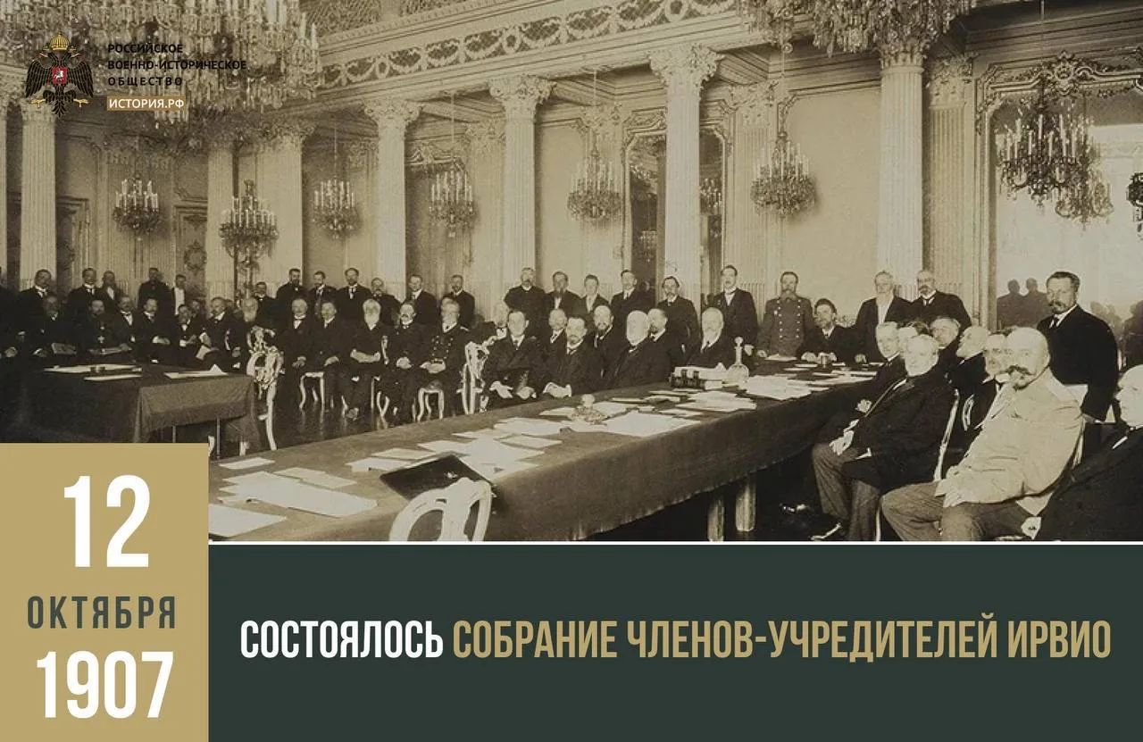 📆 12 октября 1907 года состоялось 3-е общее собрание членов-учредителей, на котором было объявлено о Высочайшем утверждении устава ИРВИО и начале работы общества