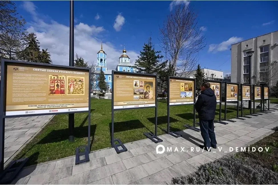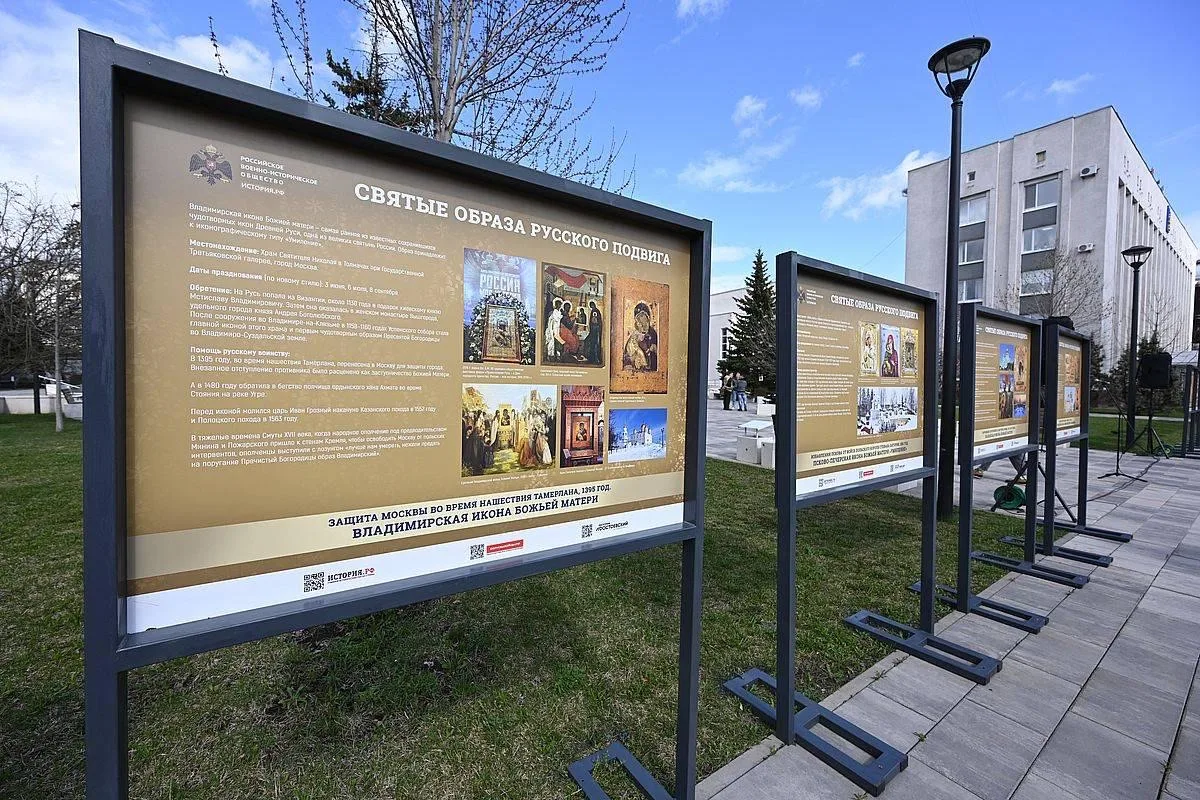 Экспозиция, которая открылась сегодня перед храмом, показывает, что подвиг многогранен: он не только на поле брани, но и в тихой молитве, в милосердии, в сохранении культуры. В основе экспозиции — 15 образов Богородицы, перед которыми русские воины молили о милосердной помощи в самые грозные моменты истории нашей страны.