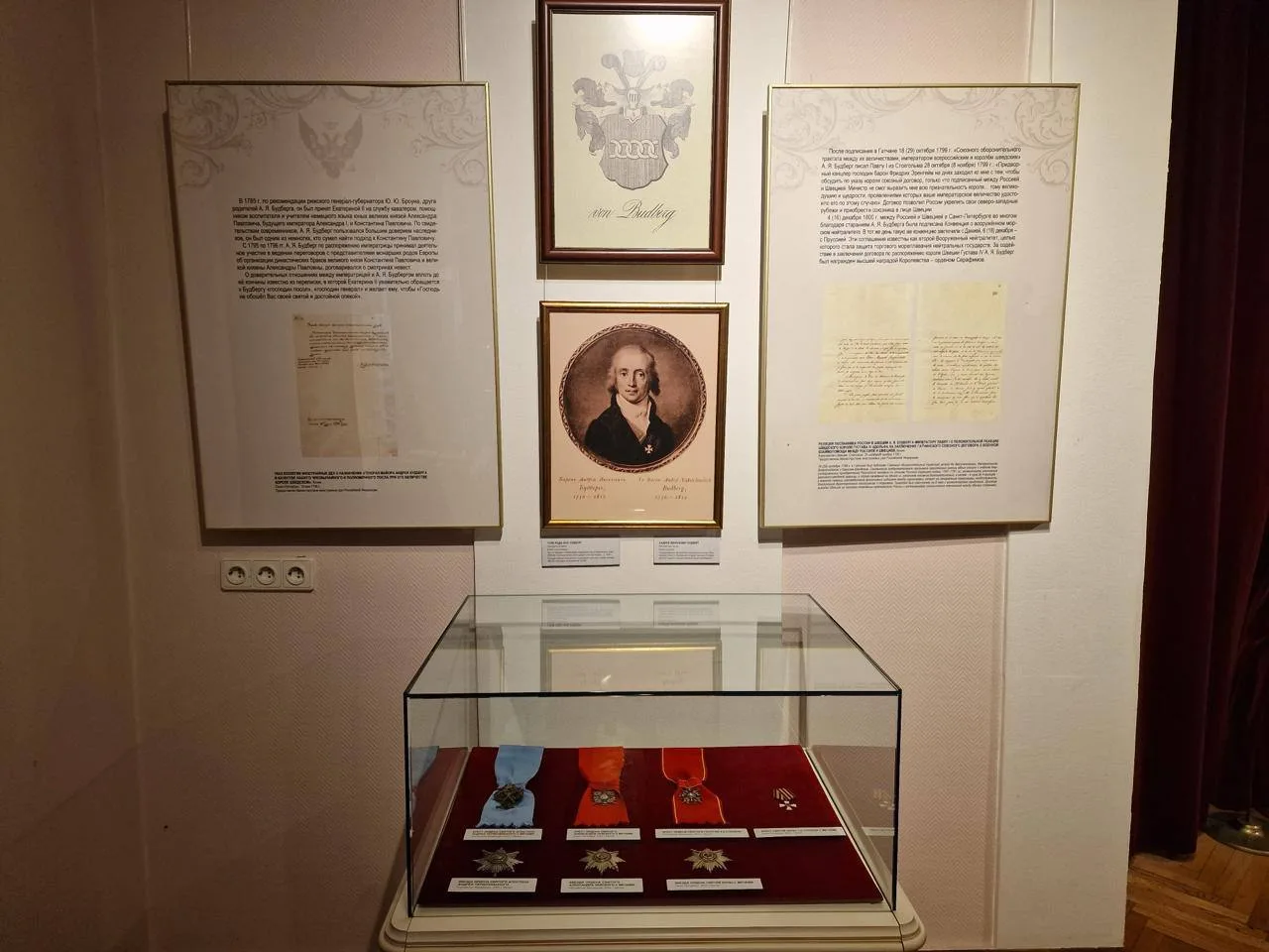 Экспозицию посвятили 275-летию со дня рождения министра иностранных дел Российской империи. В её основе – уникальные документы, которые иллюстрируют политическую ситуацию в Европе того времени и деятельное участие Будберга в защите интересов России. Письма к нему императрица Екатерина II часто завершала следующей фразой: «Молю Бога, господин посол Будберг, чтобы он осенил Вас своею благодатью и достойно сохранил».