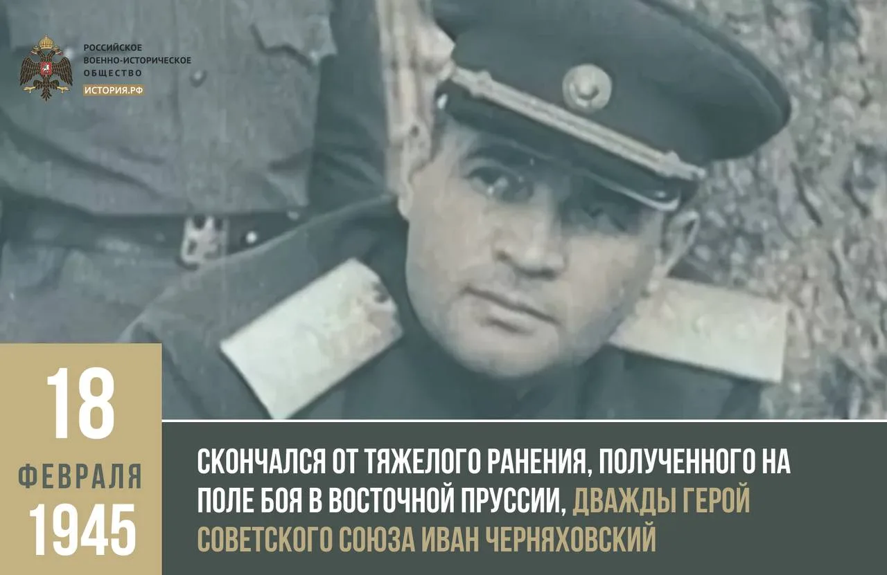 📆 18 февраля 1945 года самый молодой генерал Красной армии, дважды Герой Советского Союза Иван Черняховский был тяжело ранен осколками артиллерийского снаряда на окраине города Мельзак в Восточной Пруссии и в этот же день скончался.