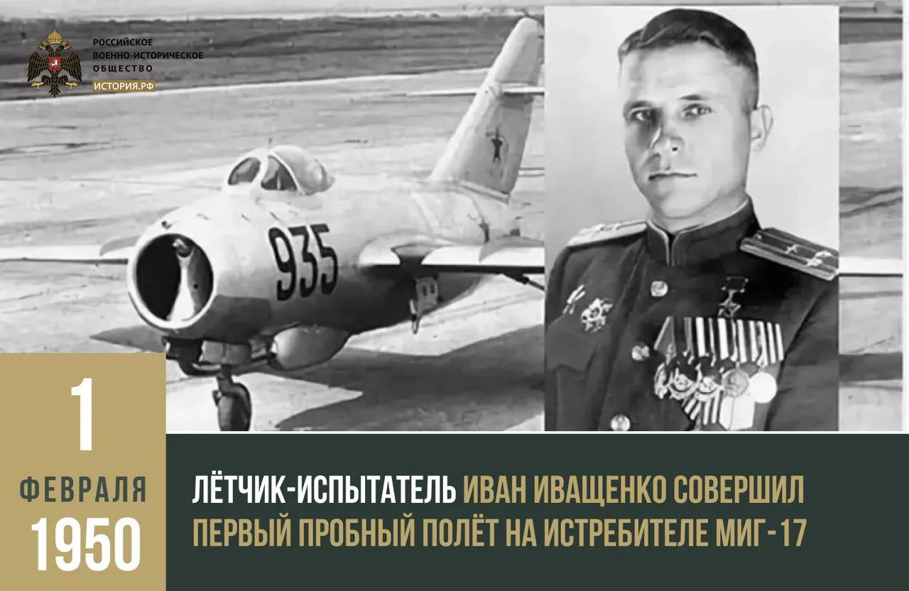 📆 1 февраля 1950 года лётчик-испытатель Иван Иващенко совершил первый пробный полёт на истребителе МиГ-17