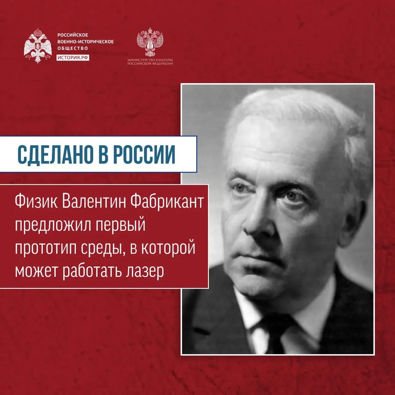 ℹ️ Физик Валентин Фабрикант предложил первый прототип среды, в которой может работать лазер. Учёный предположил, что можно добиться постоянного электромагнитного излучения и создать направленный луч света.