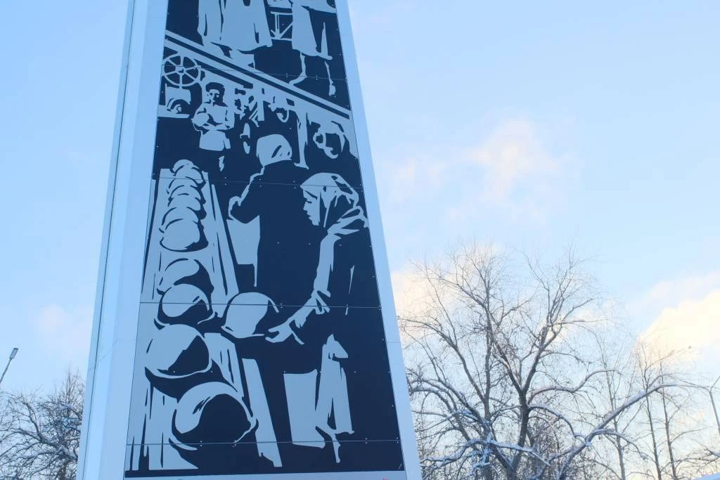 Стела «Город трудовой доблести» установлена РВИО напротив Мемориала Славы и Вечного огня.