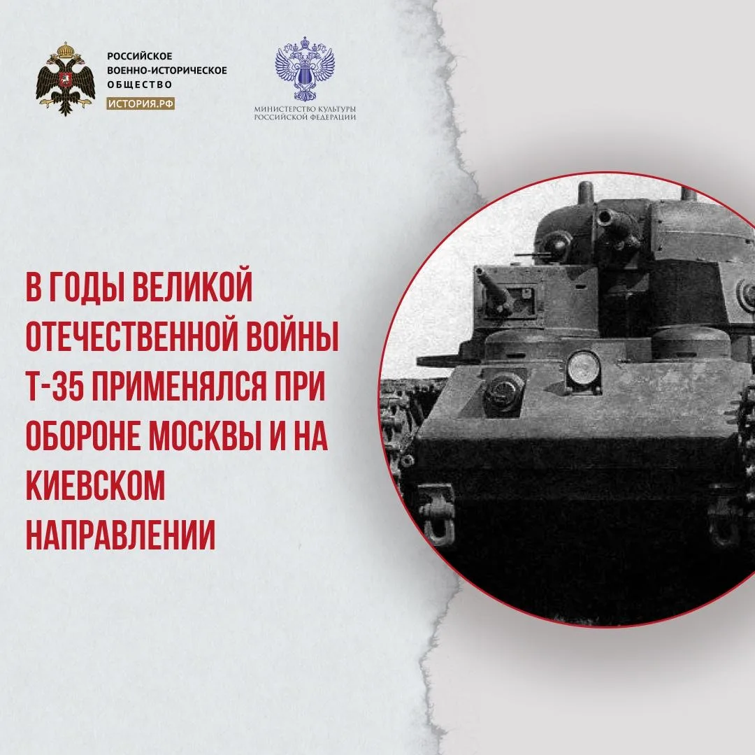 В годы Великой Отечественной войны Т-35 массово не использовался. Танки применялись лишь при обороне Москвы и на киевском направлении. Однако эта машина оставила заметный отпечаток в советской военной культуре – Т-35 изображен на ряде агитационных плакатов и на медали «За отвагу», а также два танка принимали участие в фильме «Разгром немецких войск под Москвой». До сегодняшнего дня дожил всего один экземпляр Т-35.