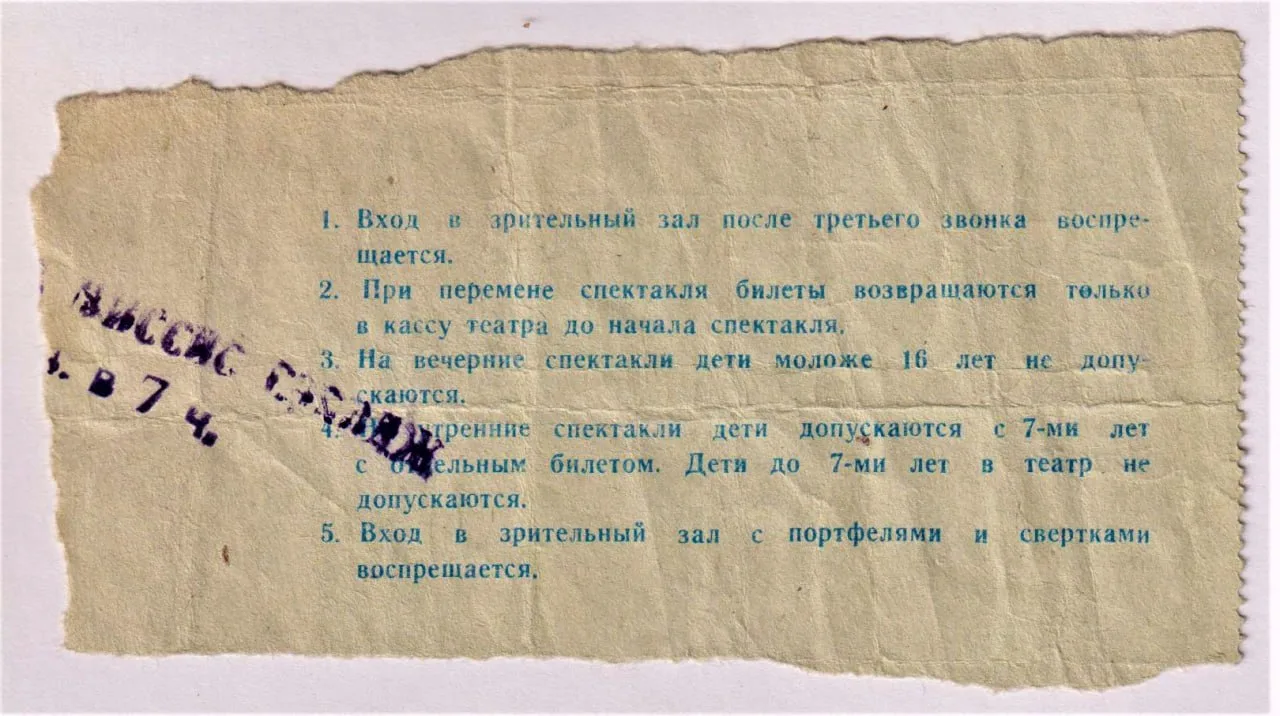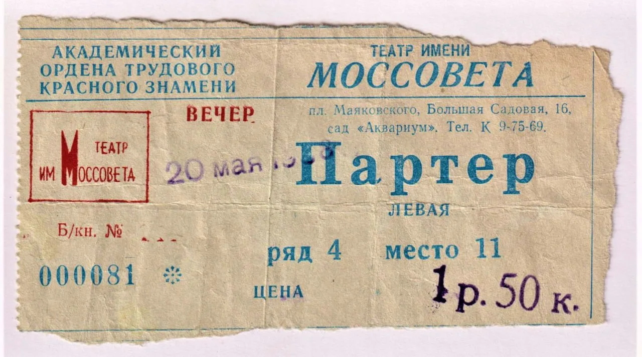 Билет в Театр им. Моссовета, 20 мая 1968 на спектакль "Странная миссис Сэвидж"