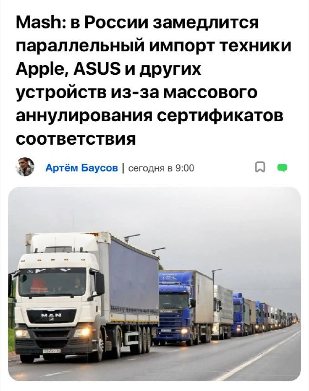 ⚡️ Параллельный импорт товаров ряда международных брендов может замедлиться. Росаккредитация приостановила действие документов трёх сертификационных органов из Казахстана, Армении и Киргизии. Через эти организации импортёры оформляли разрешительную документацию для продукции компаний Apple, ASUS, Bosch, Nike и других. Полной остановки поставок не ожидается, однако процесс переоформления документов может занять время и создать дополнительные сложности для логистики. @RetailBis