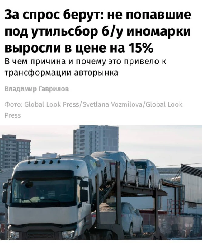 ⚡️ Цены на поддержанные иномарки, не облагаемые утильсбором, выросли на 15% из-за повышенного спроса.