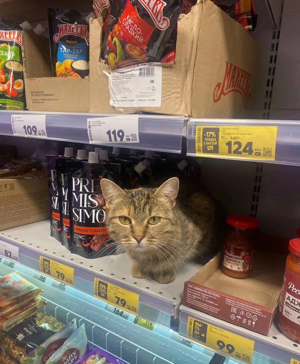 ⚡️ В магазине на полке был обнаружен пушистый кот, которого никто не захотел забрать.