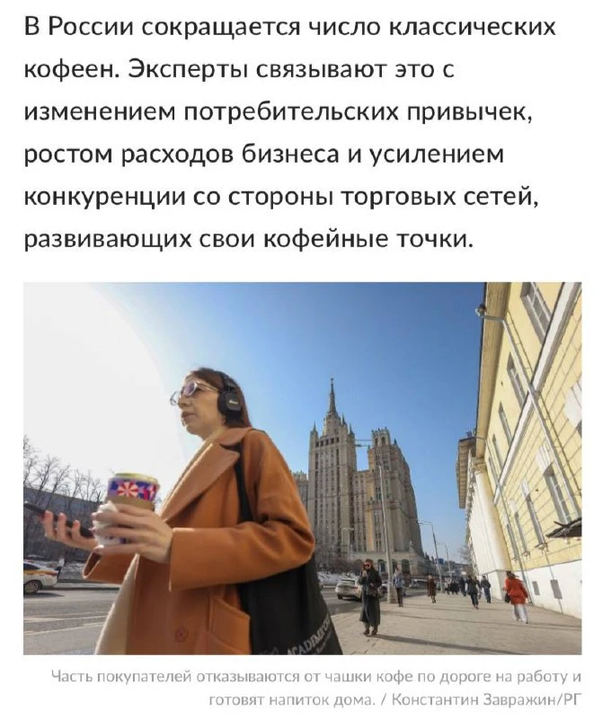 ⚡️ Число классических кофеен в России сократилось на 13% по сравнению с прошлым годом и к февралю составило около 7,7 тысяч заведений. Основными причинами стали изменение потребительских привычек, рост расходов бизнеса и усиление конкуренции со стороны кофейных точек торговых сетей. @RetailBis