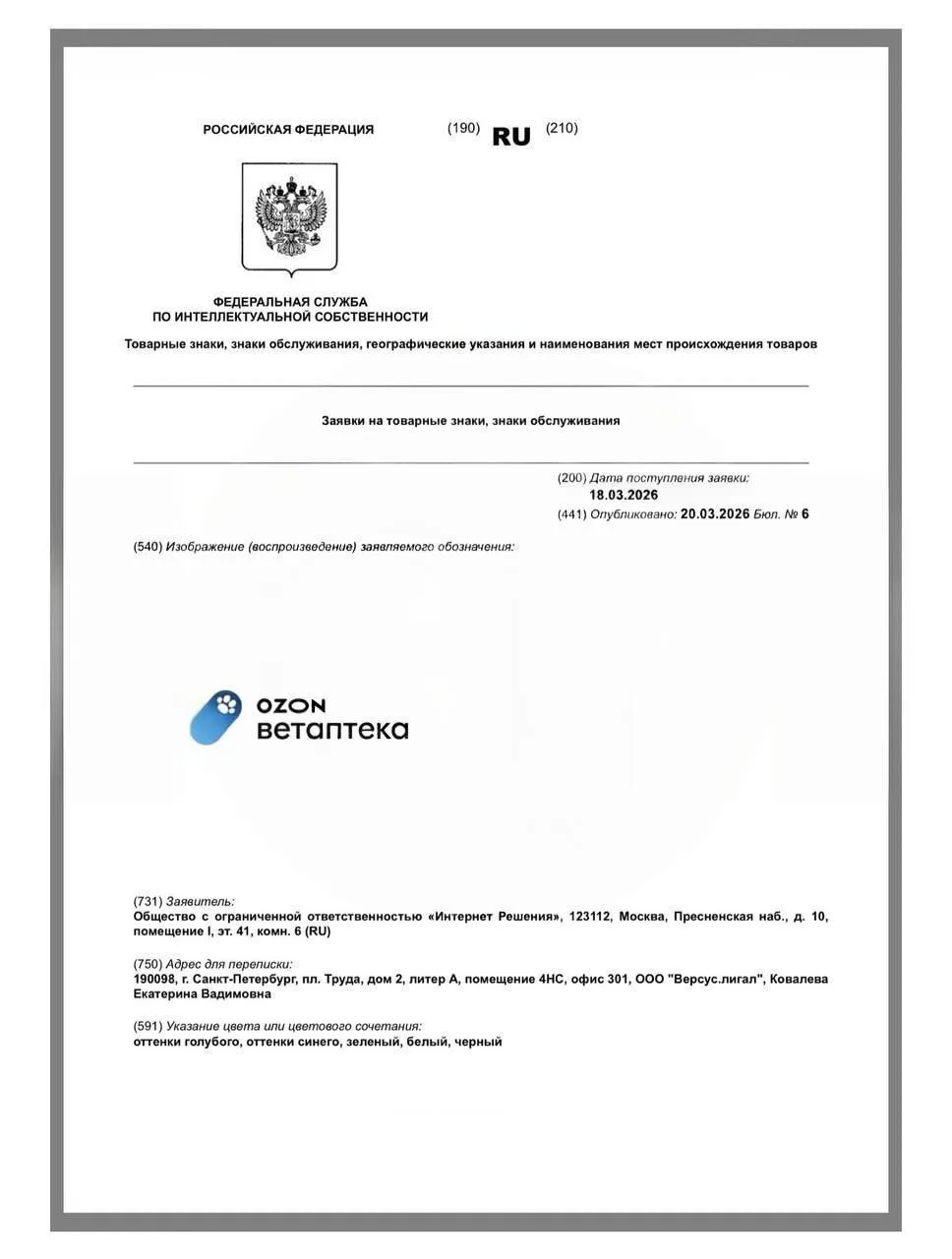 ⚡️ Ozon планирует открыть аптеки в России. Компания зарегистрировала бренды «Ozon Аптека» и «Ozon Ветаптека», что указывает на её выход на фармацевтический рынок.