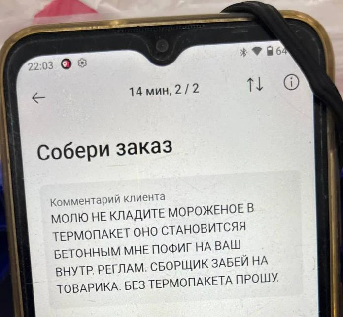 ⚡️ Сладкоежка просит не класть мороженое в термопакет, чтобы оно не растаяло. @RetailBis