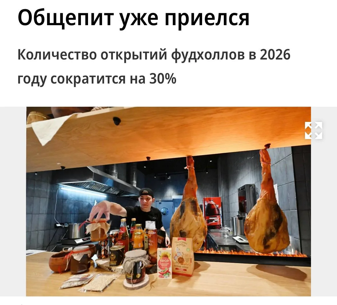 ⚡️ В России резко сокращается число фудхоллов. По данным «Коммерсанта», в этом году открытий новых точек общепита станет на 30% меньше. Эксперты связывают это с охлаждением рынка и снижением покупательской способности. @RetailBis