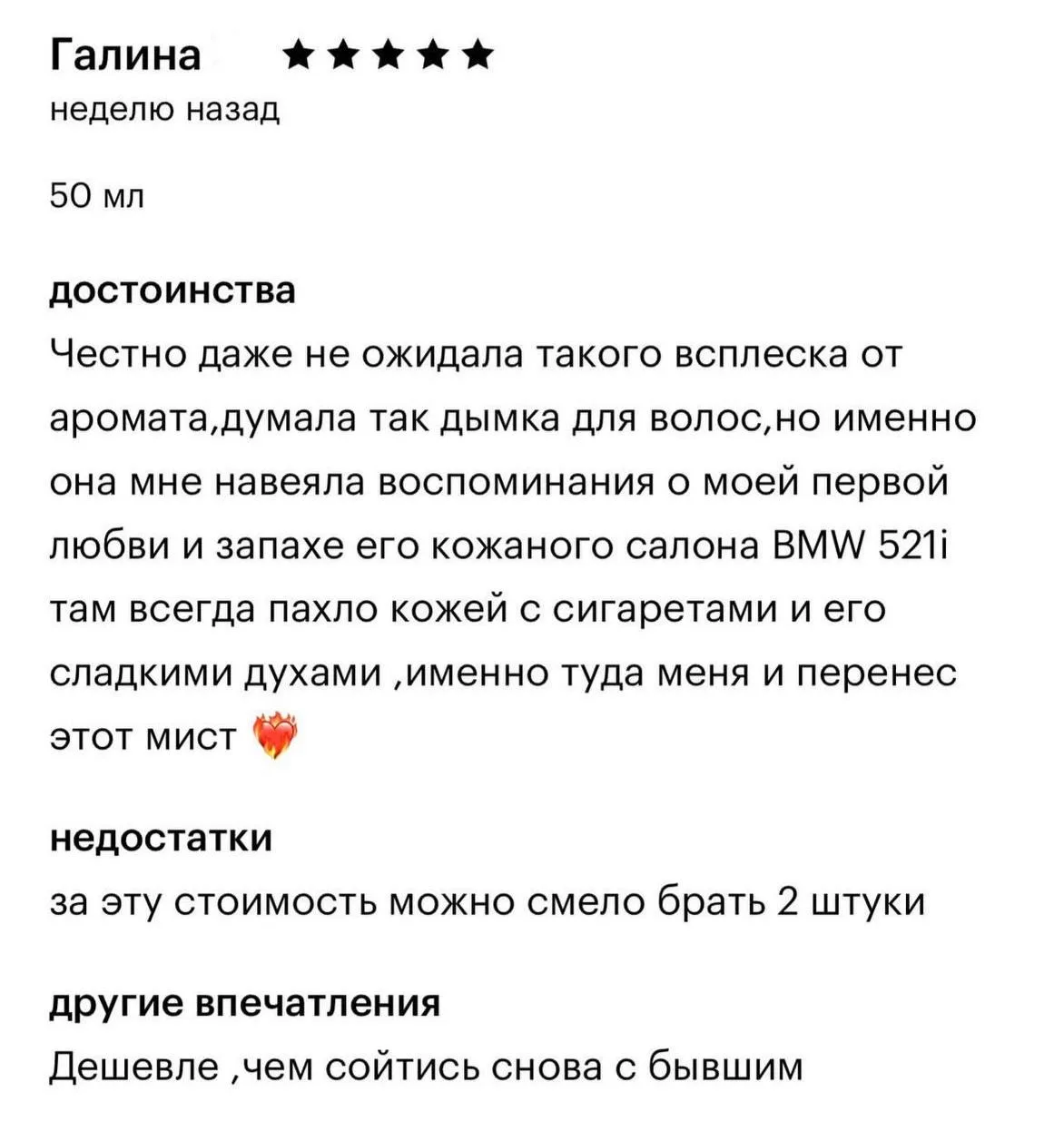⚡️ В сети нашли один из самых продающих отзывов на духи. Он гласит: "Дешевле, чем сойтись с бывшим".
