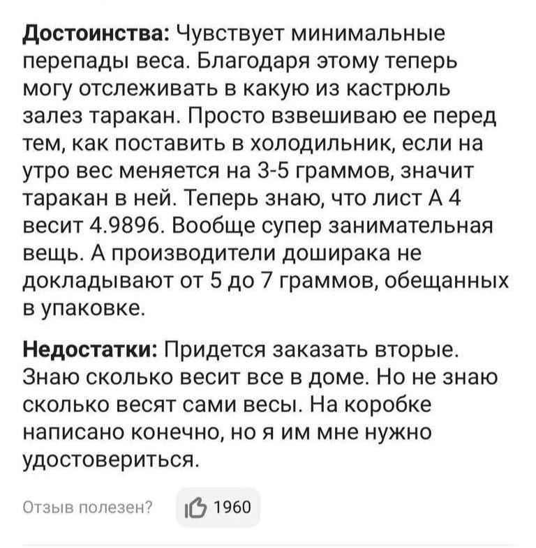 ⚡️ Девушка нашла необычное применение кухонным весам — с их помощью она отслеживает, в какую из кастрюль залезает таракан. @RetailBis